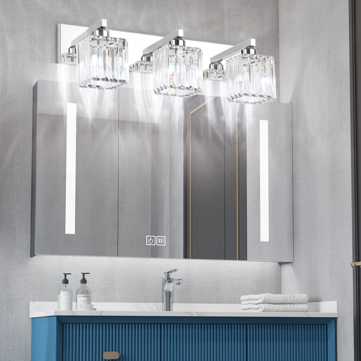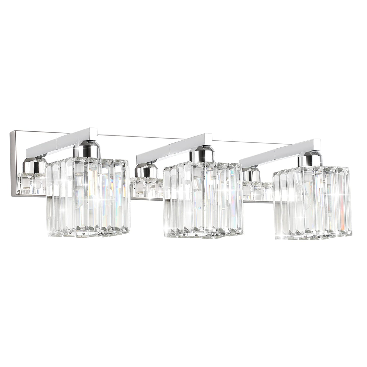SPECIFICATION:Length 23.6 inch*width 7.2 inch,7.3inch extend from the wall. The dimensions of the vanity light fixture backplate are: length 23.6inch x width4.7inch. | E26 SOCKET & DIMMABLE: This vanity light is compatible with E26 bulbs.It is recommended to use E26 bulbs with length less than 4.7 inch. This vanity light fixture can be dimmed if you install the dimmable bulbs.(Not included Bulbs) | HIGH-QUALITY MATERIALS:The materials of this crystal vanity light are:Stainless Steel ,Crystal. The mirror gloss finishing stainless steel makes the metal not easy to be corroded and aged. It can be as good as new in any time.The gorgeous crystal creates a beautiful lighting effect and brings more brilliance to your life. The crystal lampshades can be taken off for cleaning. | EASY TO INSTALL: The chrome vanity light needs to be simply assembled. There is no switch or plug on this bathroom light fixture.(You need to prepare a switch.) | SINCERE SERVICE:If there is any problem with this crystal vanity light, please feel free to contact us to provide you with a solution. We will try our best to provide you with a high-quality shopping experience. Please shop with confidence!