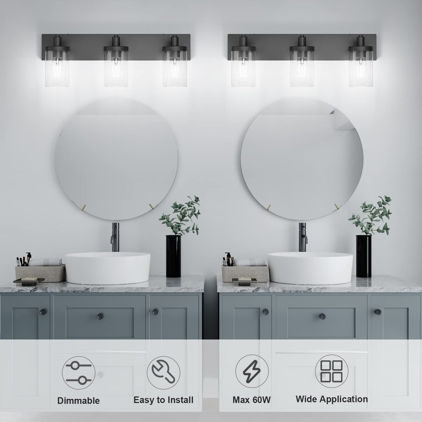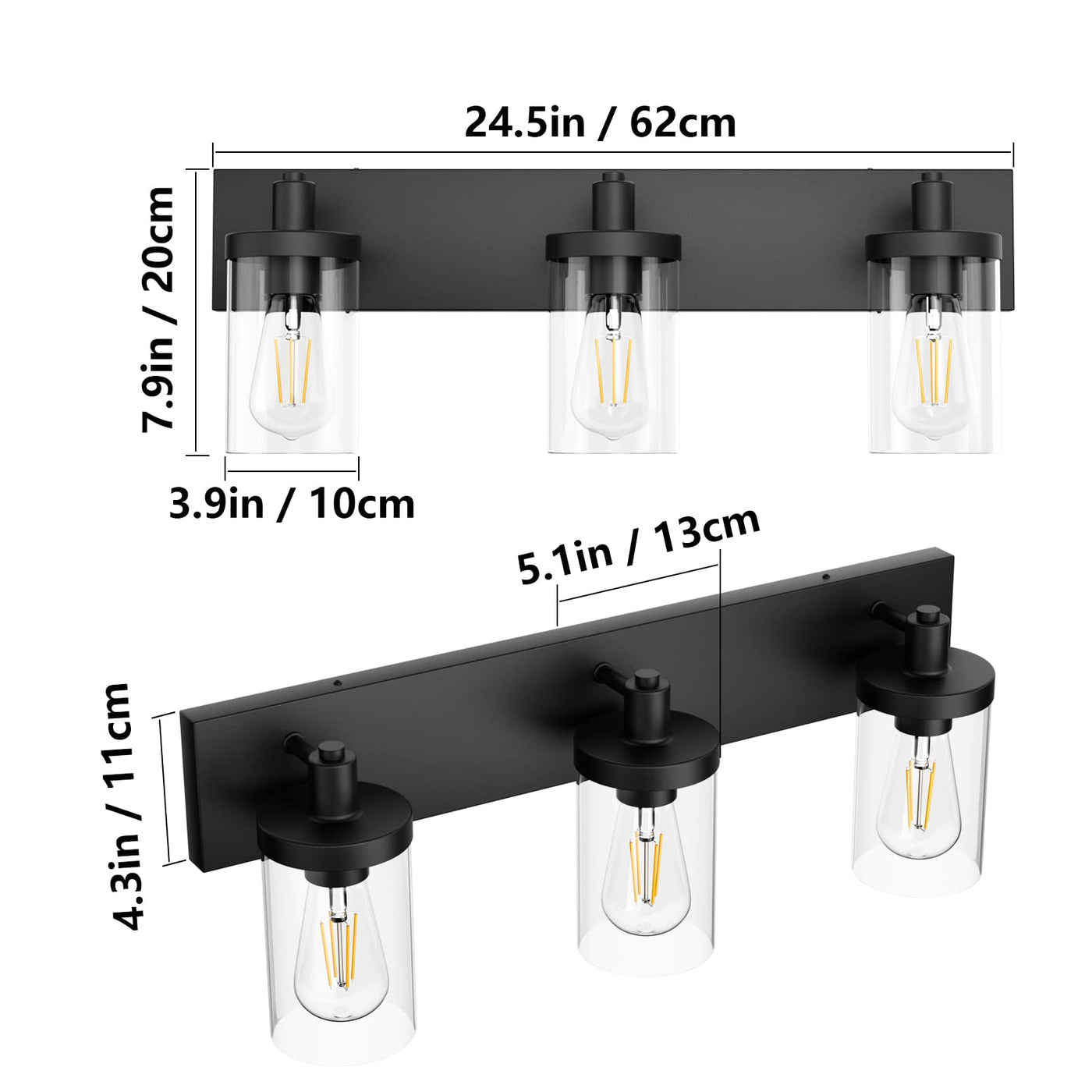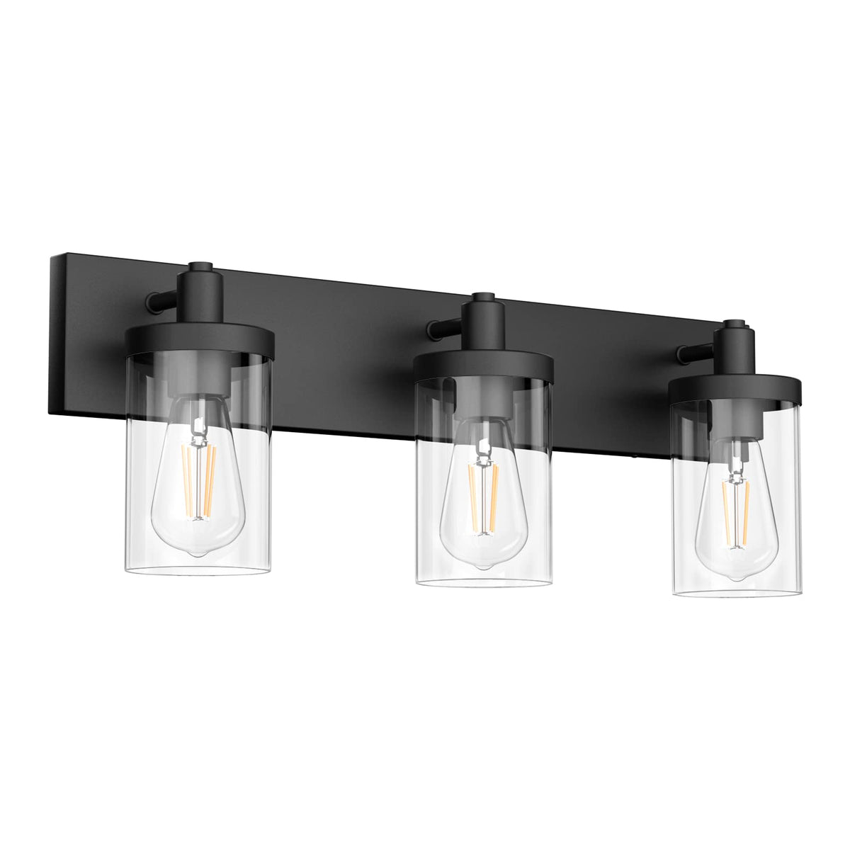 Aipsun Black Vanity Light For Bathroom 3 Light Farmhouse Bathroom Lights Fixtures Over Mirror With Clear Glass Shade(Exclude Bul