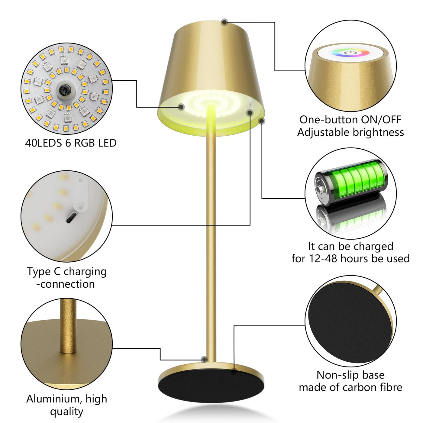 - **Rechargeable & Portable**: Equipped with a built-in 5000mAh rechargeable battery, these lamps can operate for 12-48 hours on a single charge, making them ideal for both indoor and outdoor use. The included USB Type-C charging cable ensures quick and convenient recharging within 6-8 hours.
