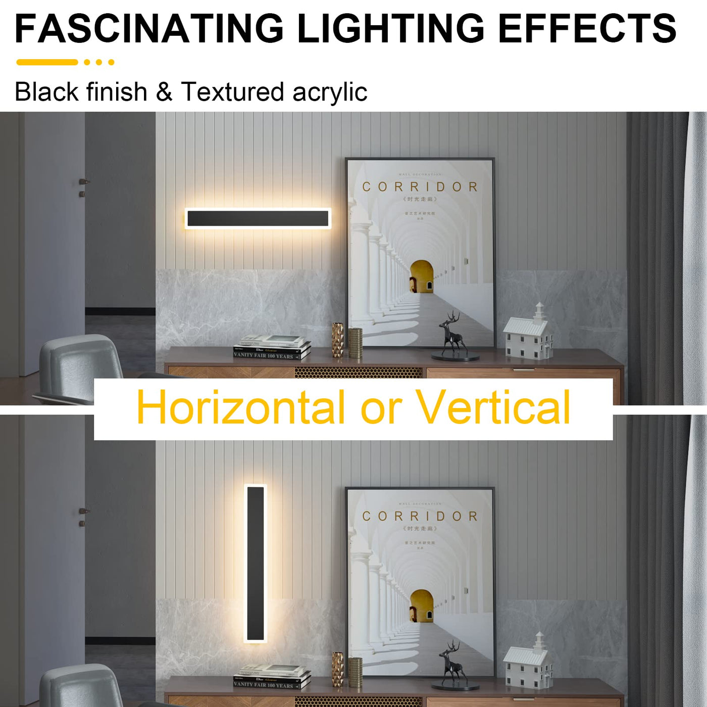 Aipsun Led Outdoor Wall Light Fixtures, Black Exterior Wall Sconces 3000K,23.6Inch Modern Porch Patio Wall Light Fixture For Hou