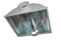 6" Air cooled Reflector - Air-Cooled with a flange to attach your ducting directly to the reflector. Designed specifically for the horticulture industry. With powder coated German aluminum to ensure a long life. This high quality reflector can be used alone or in a line with many others. Connected by ducting to a sufficient fan this reflector will produce optimum results with cool and efficient operation. Comes with Hinged glass for easy cleaning Pre-installed lamp socket, 15' cord, and 2 hanging clips included. . Works with all wattage MH and HPS lamps. - Completely assembled ready to use - German Aluminum - Lightweight - Hinged flip down glass - Durable - Works with MH and HPS - Works with 250w through 1000w - Measures 19"L x 22"W x 7.5"H - Sealed air-tight design - 6” Flange for duct connecting - Power coated steel - 4 corner reflective material - Lamp not included but available on our website