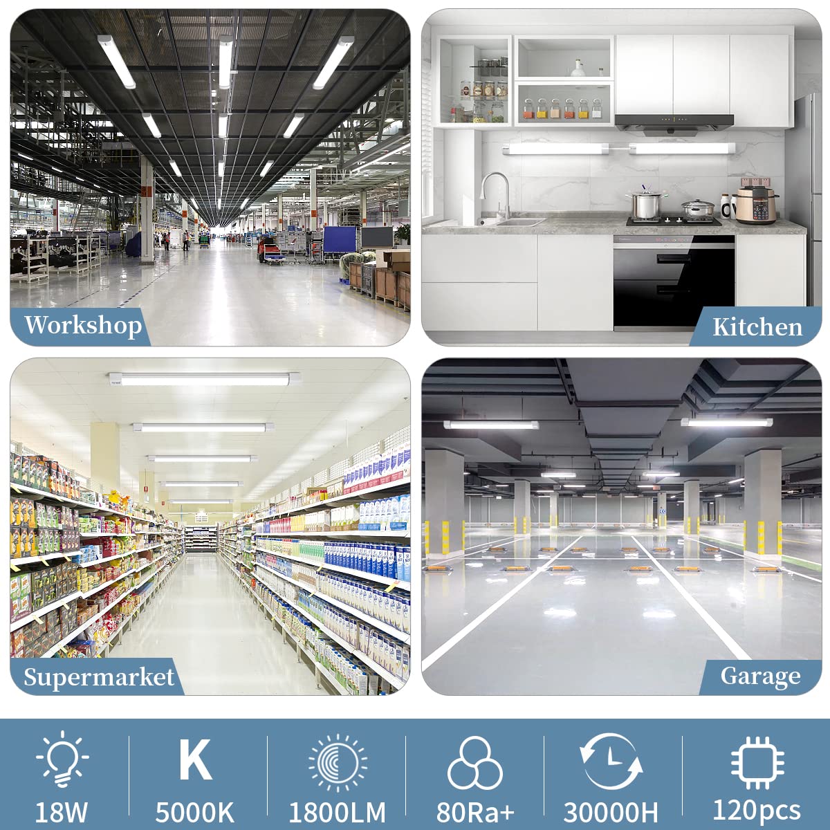 - **Super Brightness**: Each 2ft light delivers an impressive 1800 lumens of soft white daylight (5000K), illuminating your space without glare or flicker. With an 80Ra Color Rendering Index (CRI), these lights restore colors to their original brilliance, ensuring a vibrant and inviting atmosphere.