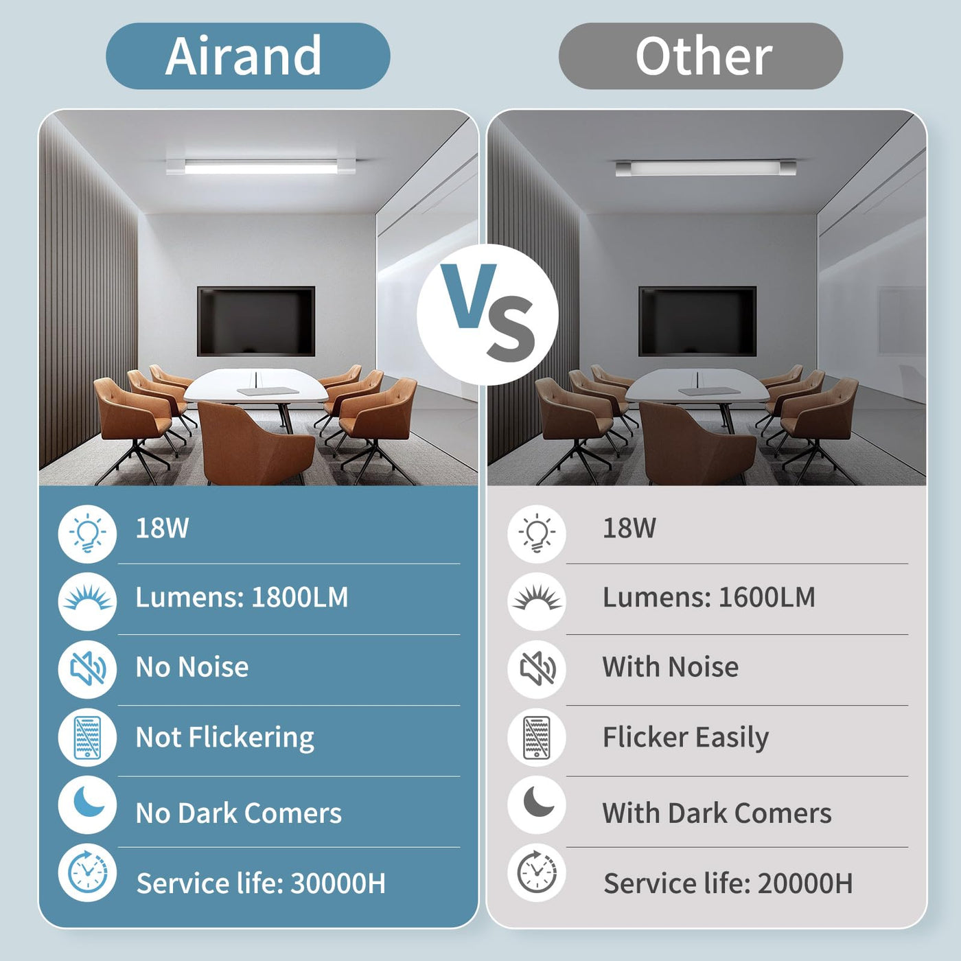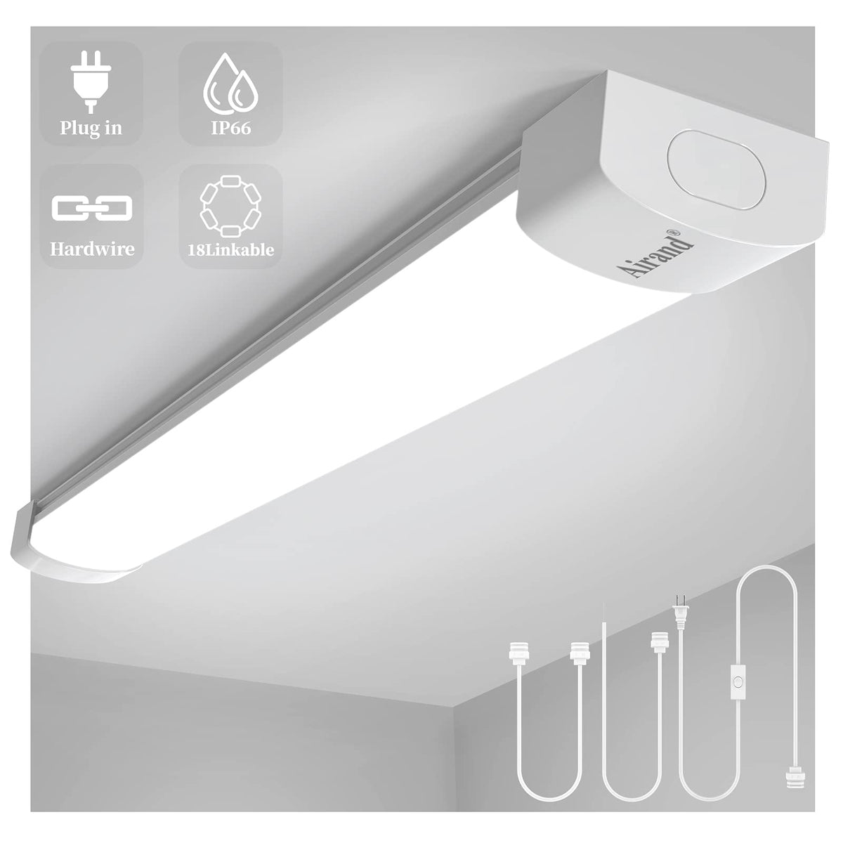 Airand 2Ft Led Ceiling Light 5000K, Linkable Flushmount, Utility Shop Lamp With On/Off Switch
