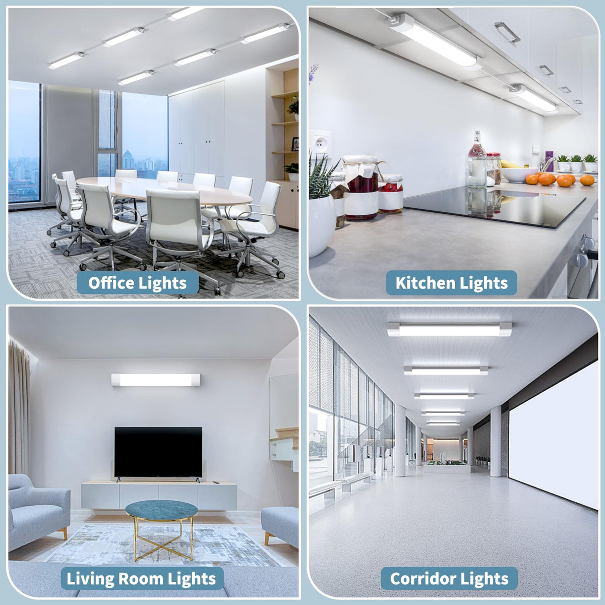- **Linkable and Versatile Design**: Capable of linking up to 18 tube lights, this fixture is perfect for larger areas. The IP66 waterproof rating ensures it’s suitable for both indoor and outdoor applications, providing versatility for wet or damp locations.