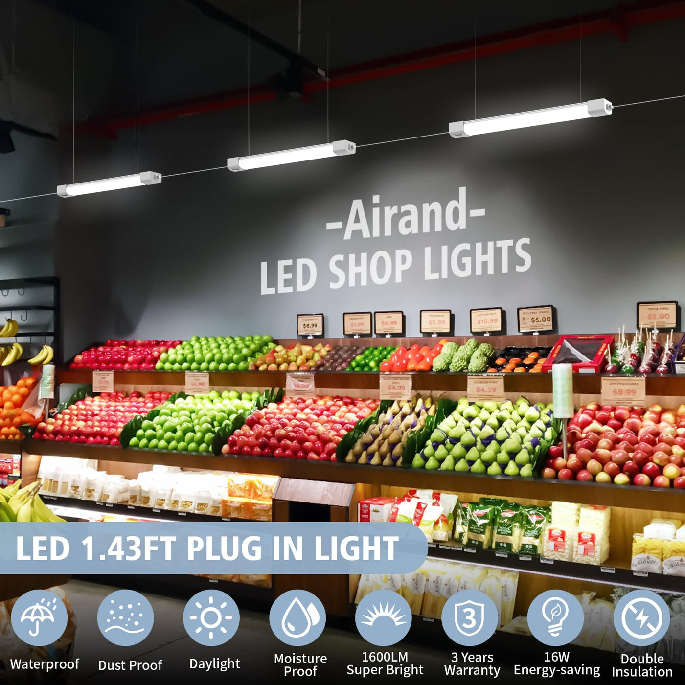 Q: How easy is it to install the Airand LED Ceiling Light Fixture?A: The installation process for the Airand LED Ceiling Light Fixture is straightforward and user-friendly. It is a plug-and-play design with stainless steel mounting clips, allowing for quick setup in various locations like under cabinets, workbenches, and closets.