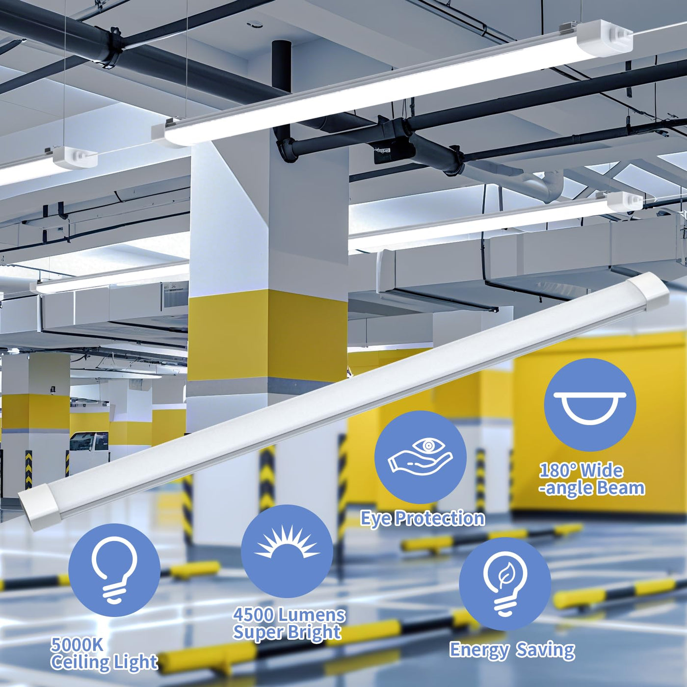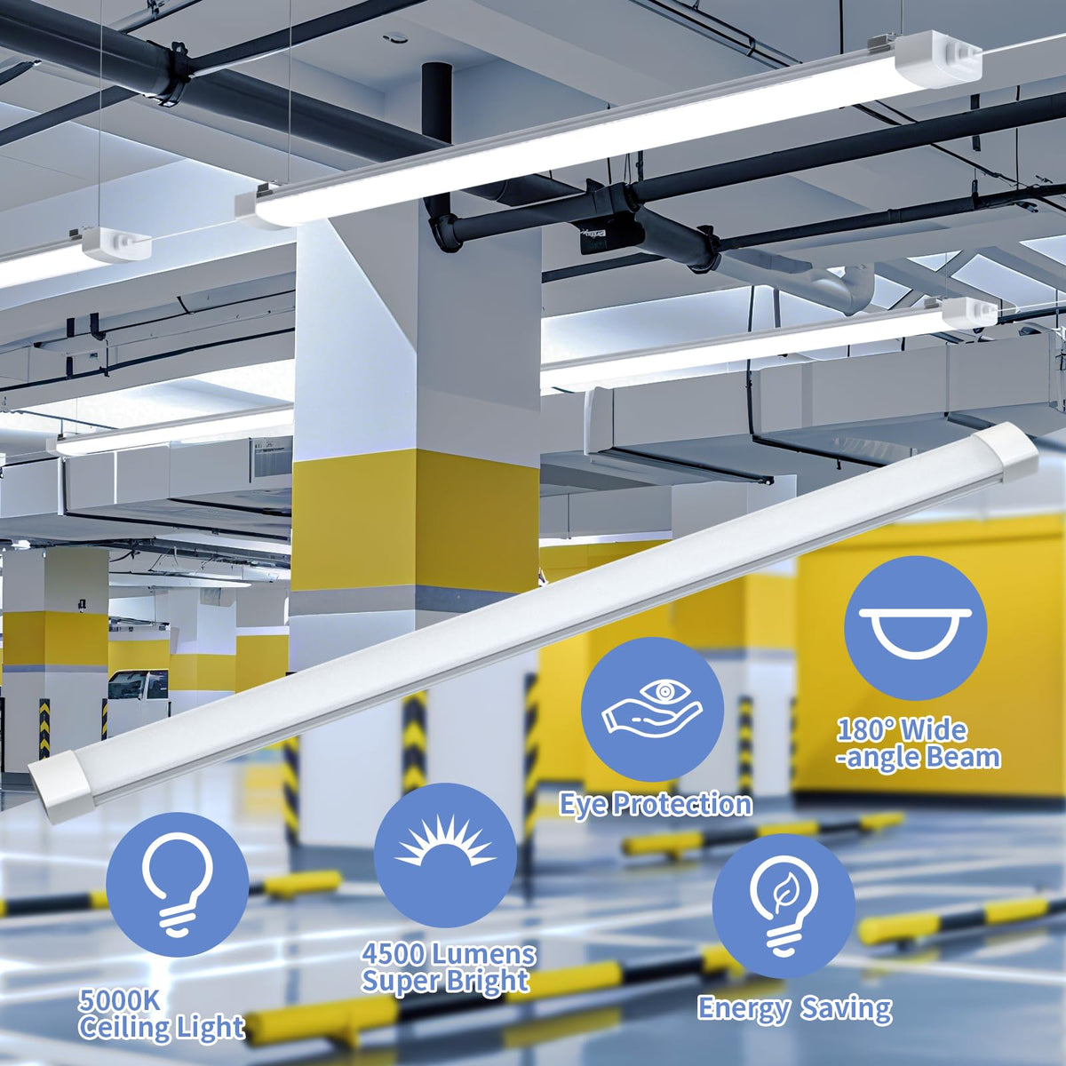 Airand Led Ceiling Light Fixture With Plug 5000K, Triproof Led Tube Lights 45W Linkable Closet Light For Workbench Kitchen Basem