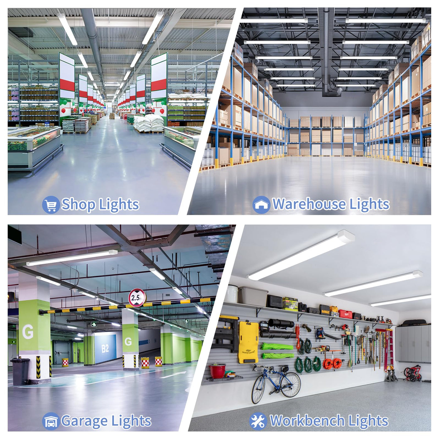 Introducing the LED Shop Light Fixture - the ultimate solution to all your lighting needs. With an output of over 4500lumens and a 5000K bright white temperature, this fixture provides smooth, even light everywhere, making it good for a wide range of settings. It is energy-saving, using only 45W of power. Its linkable and easy-to-install design makes it even more versatile. Plus, its water-proof feature and long lifespan of up to 30,000 hours provide you with the peace of mind you deserve. Don't wait any longer to upgrade your lighting game - get the LED Shop Light Fixture today