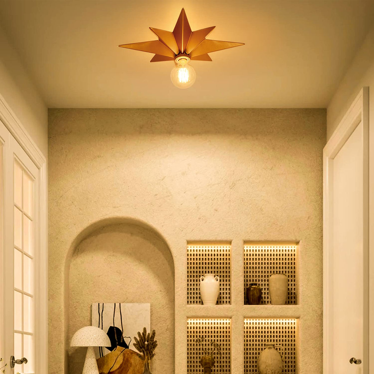 The Vintage Metal Flush Mount Ceiling Light With Gold Star Shape Is A Stunning Lighting Fixture That Effortlessly Combines Functionality With Artistic Design. Ideal For Illuminating Various Spaces, This Versatile Ceiling Light Can Also Serve As A Wall Lamp, Making It Perfect For Any Room In Your Home.