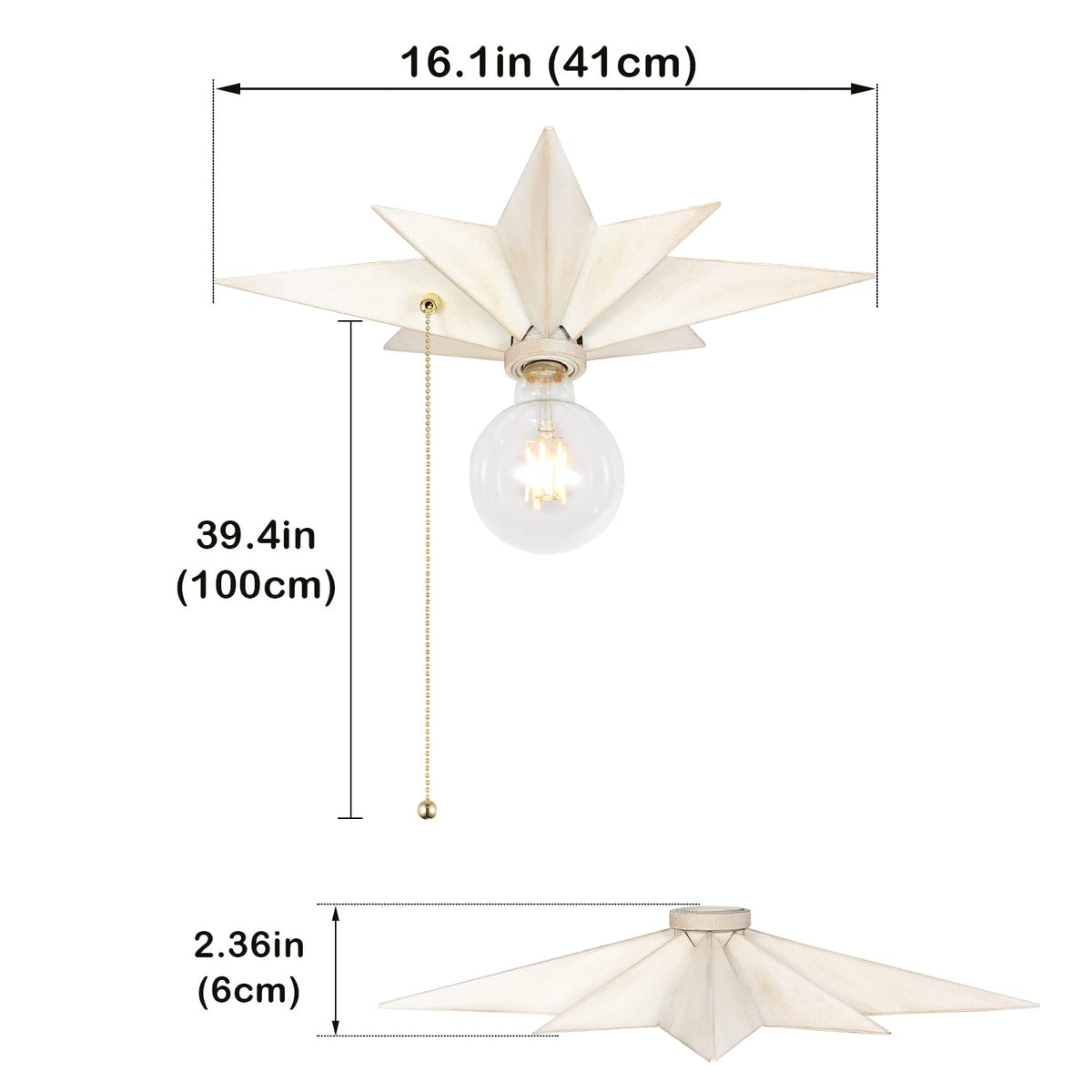 Crafted from well-made metal, this ceiling light features a distinctive star shape that creates a captivating atmosphere in any room. Its exquisite white retro matte finish adds a touch of sophistication, making it a perfect fit for bedrooms, living rooms, dining rooms, and even commercial spaces like cafes and restaurants. The pull chain design allows for easy operation, making it an ideal choice for corridors, porches, and stairwells. Installation is straightforward, allowing you to quickly enhance your space with minimal effort.