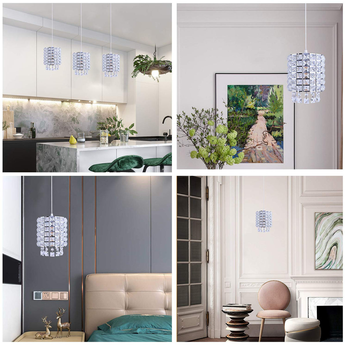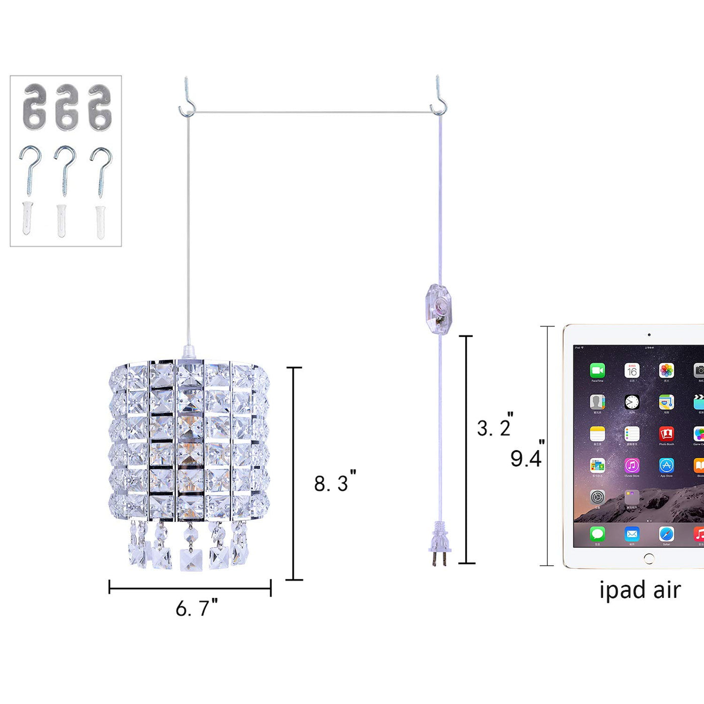 Airposta Dimmable Plug in Pendant Light, Crystal Mini Chandeliers, Modern Chrome Finish Crystal Hanging Chandelier Sparkly Ceili