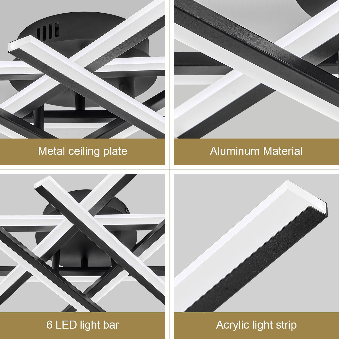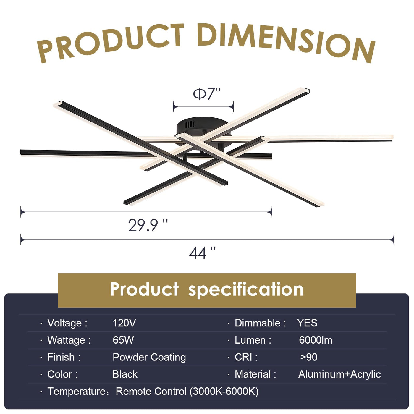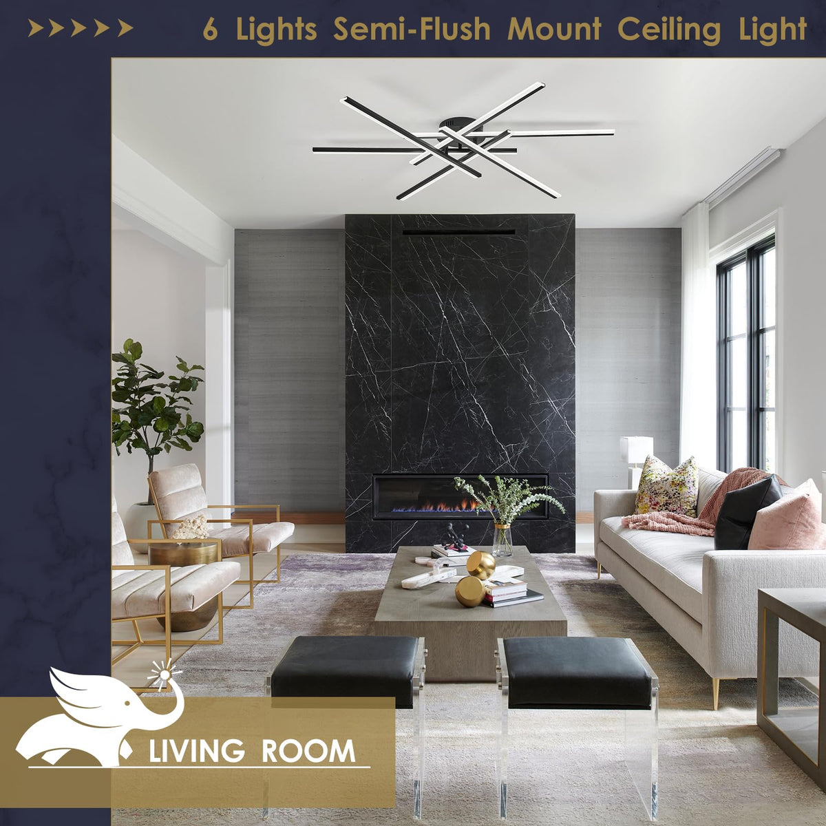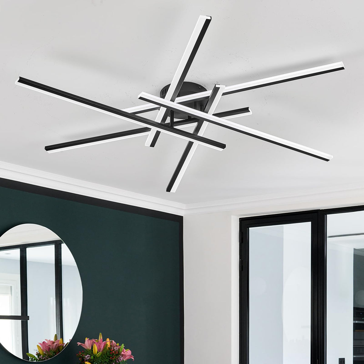 Airyphant Modern Led Chandelier With Remote Control 6-Lights Black Semi-Flush Mount Ceiling Lighting Fixture For Living Room Bedroom Dining Room 60W