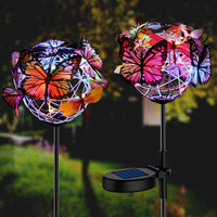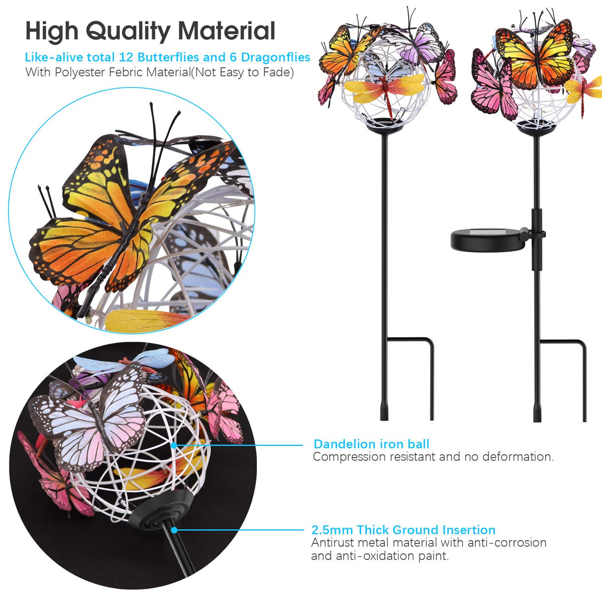 Q: What is the design and material of the butterfly lights?A: These garden lights are designed with beautiful butterflies made from durable polyester fabric, ensuring they do not easily fade. The dandelion iron ball is compression-resistant and maintains its shape, while the ground insertion is made from rust-resistant metal, coated with anti-corrosion paint for longevity.
