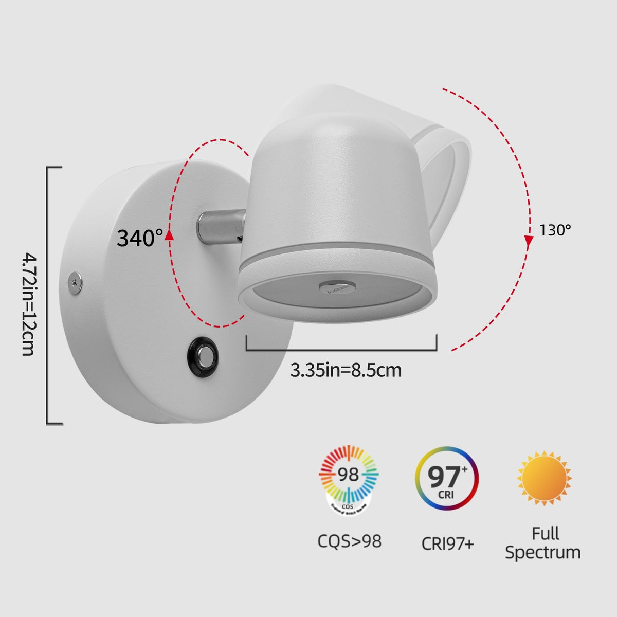 Aisilan Wall Sconces Set Of Two With Switch Dimmable 7W Sconces Wall Lighting Modern White Bedroom Wall Mounted Light Adjustable