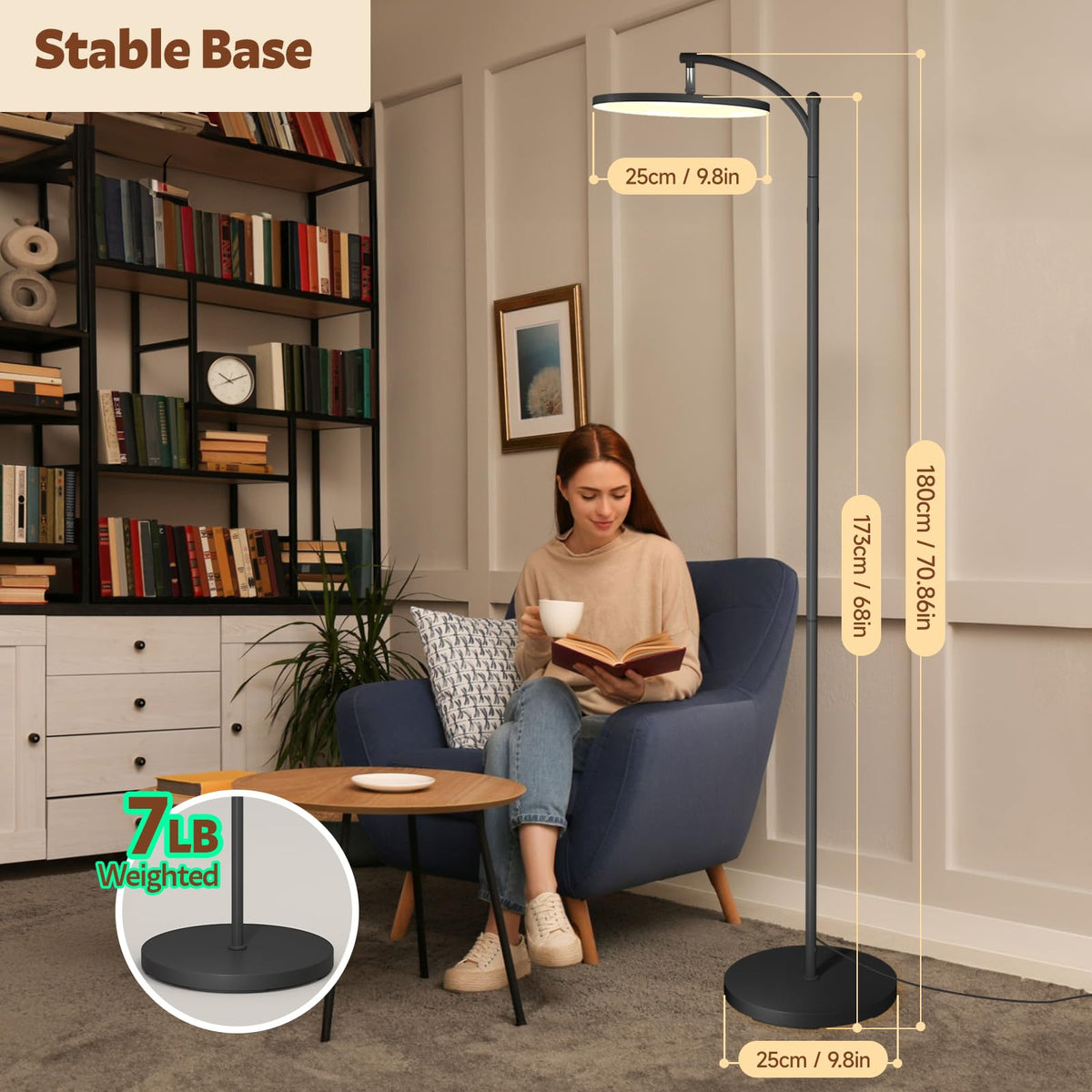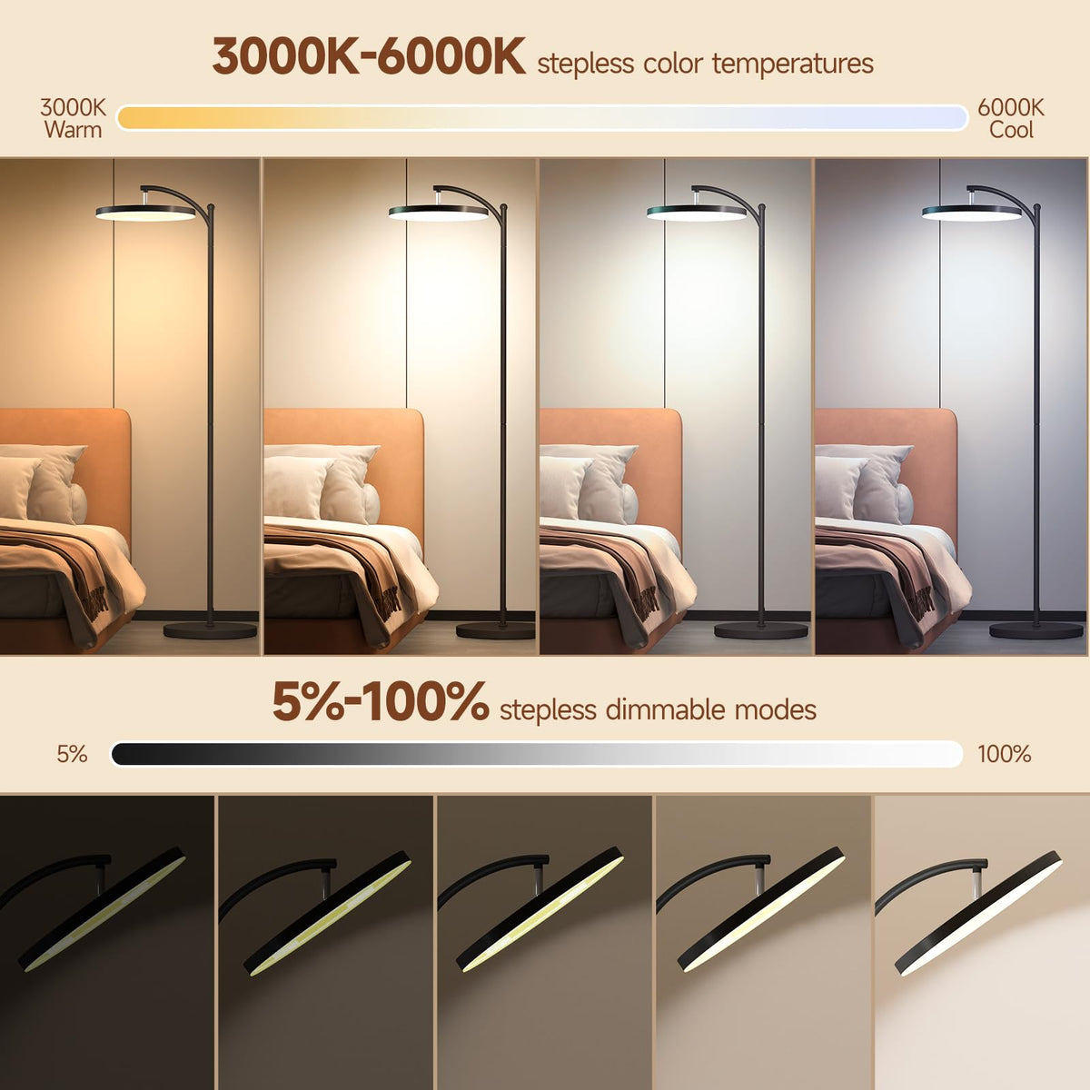 Q: What makes the Aisutha LED Floor Lamp suitable for reading and relaxation?A: The Aisutha LED Floor Lamp features upgraded 32W LED lights that produce 3000 lumens, providing bright and healthy illumination without flickering or blue light hazards. Its stepless dimming functionality allows you to adjust brightness from 5% to 100%, making it ideal for reading, writing, or simply relaxing.