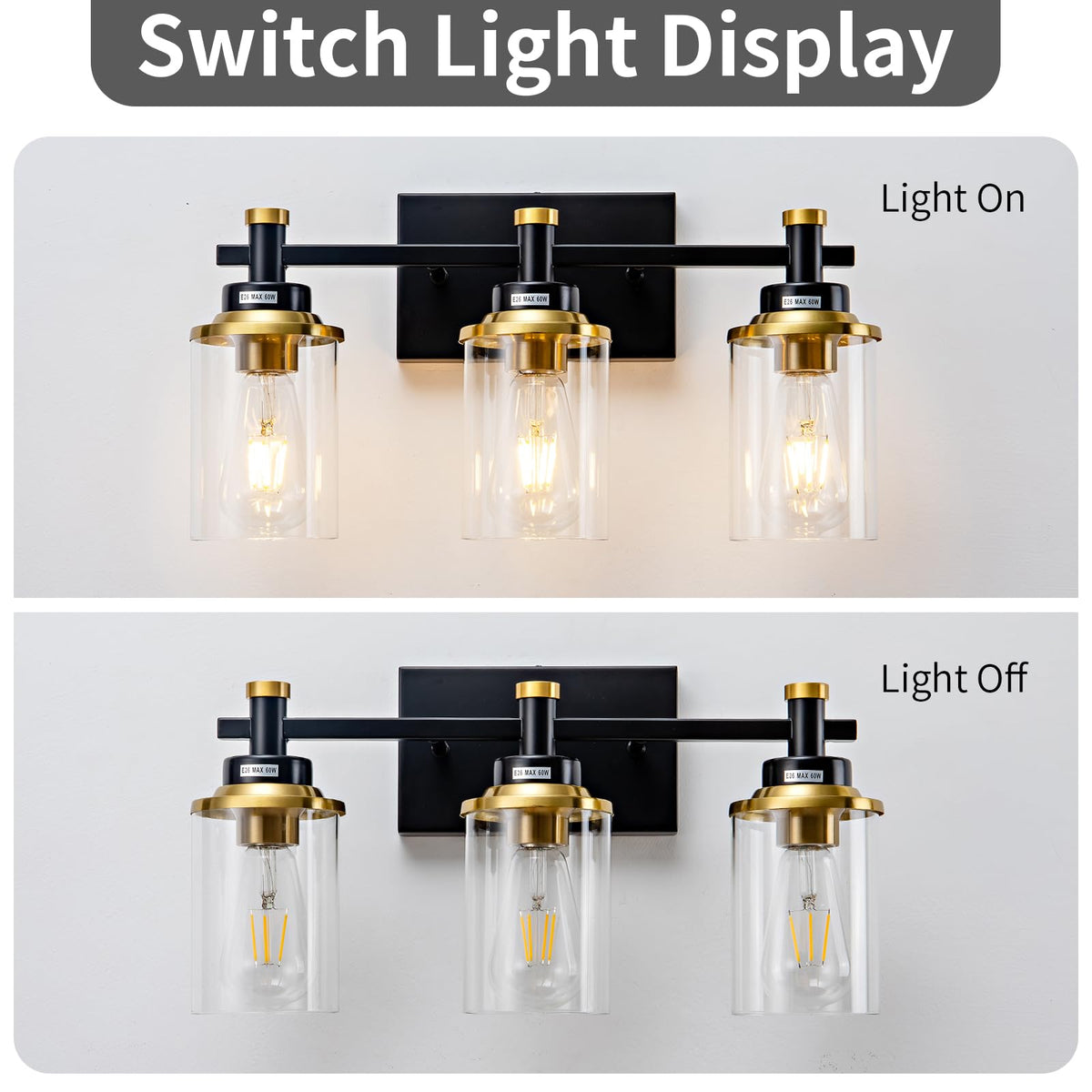 Aixialin 3 Light Bathroom Light Fixtures, Black And Brushed Gold Vanity Light Fixture Over Mirror, Modern Wall Sconces Lighting