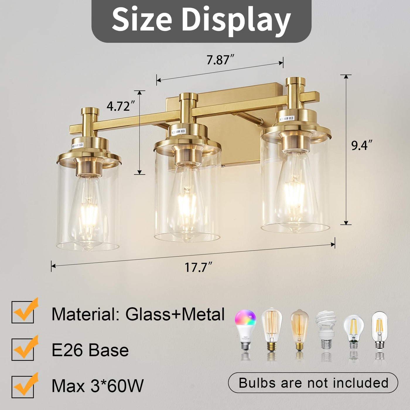 Aixialin 3 Light Gold Bathroom Vanity Light Over Mirror, Brushed Brass Vanity Light Fixture Modern Bath Wall Sconce Lighting Wal