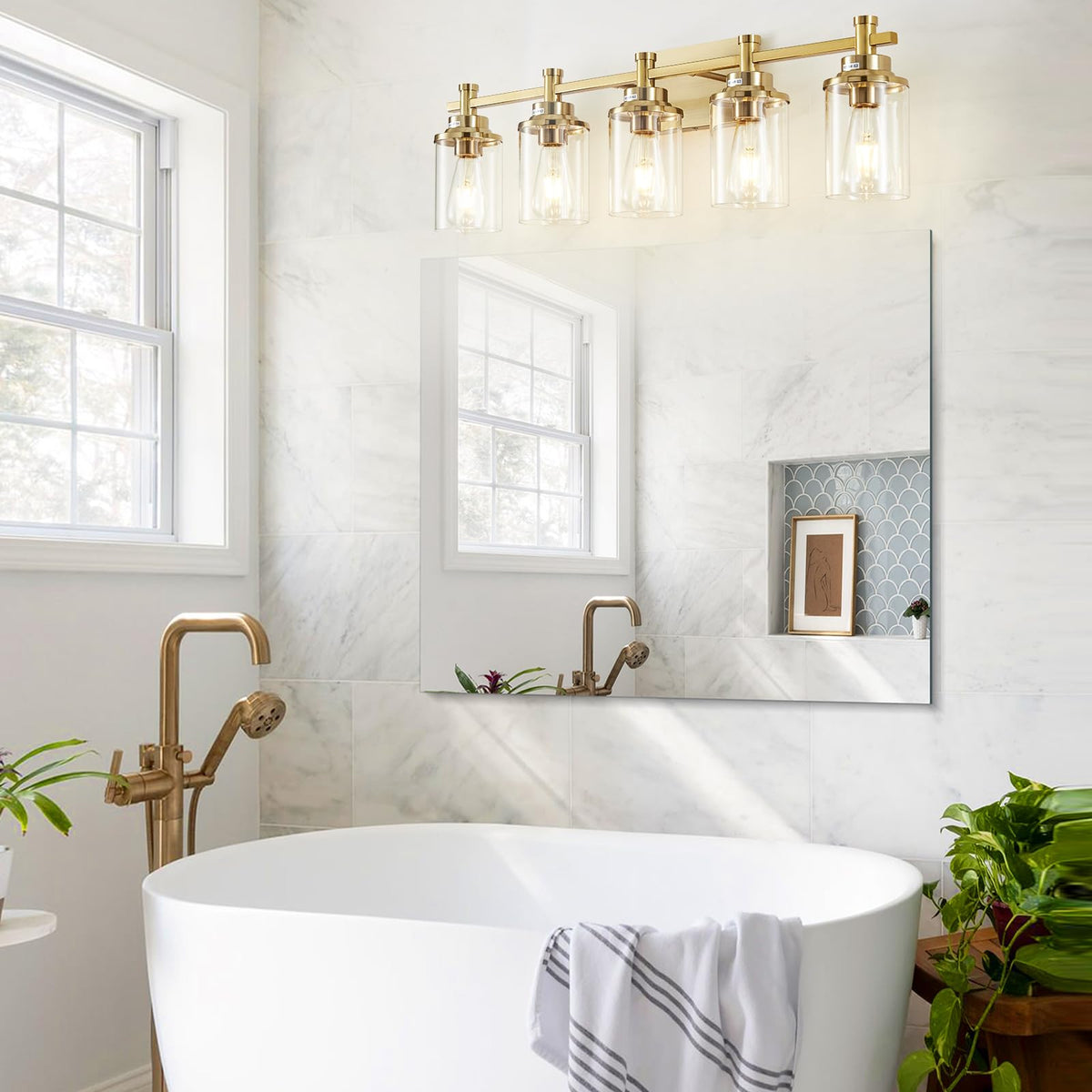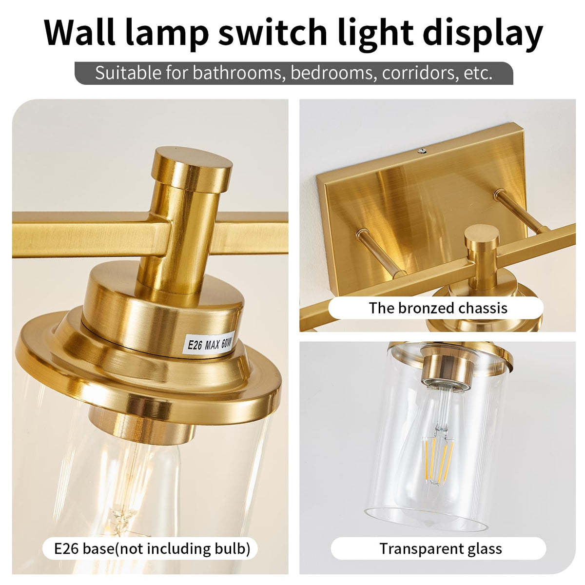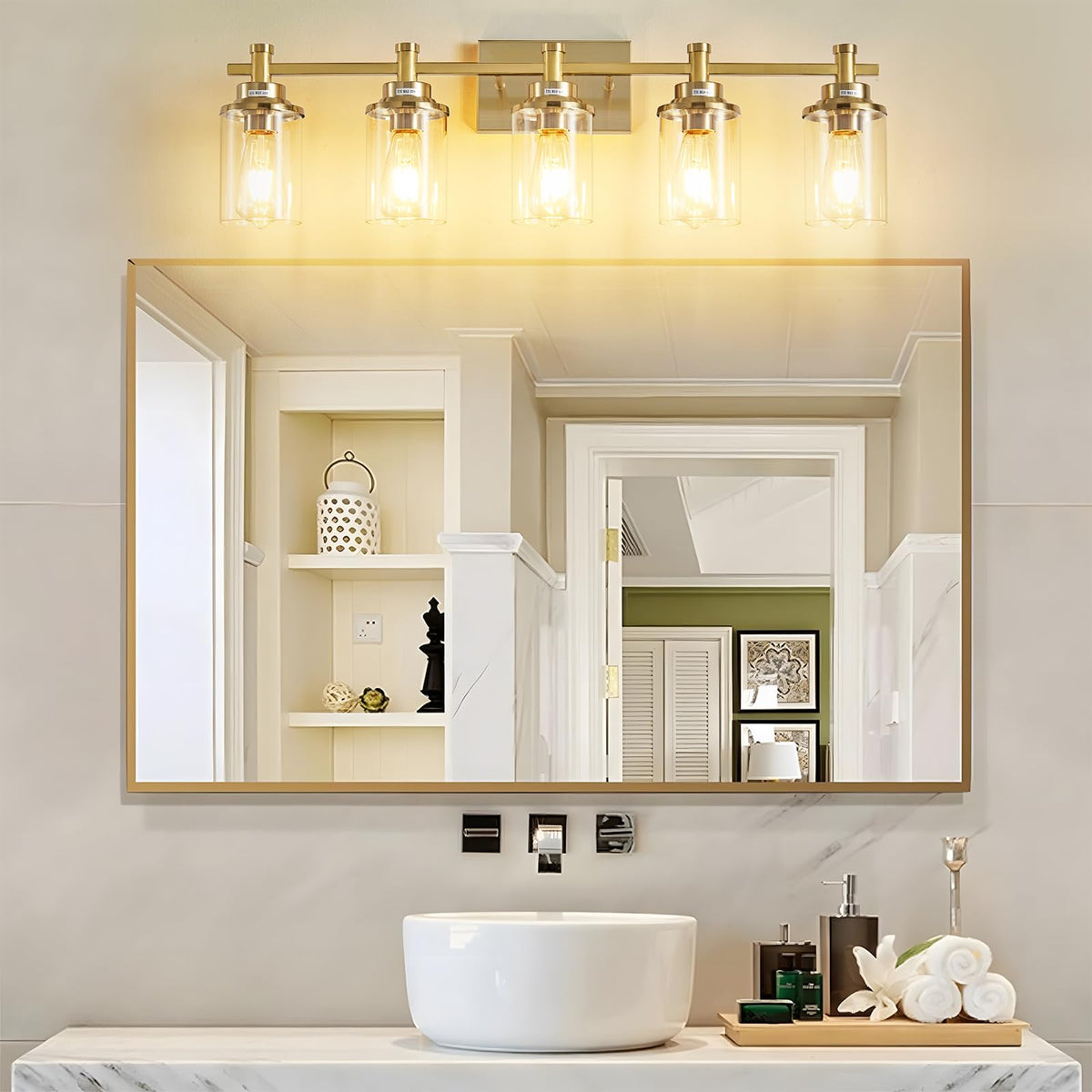 Aixialin 5-Light Modern Vanity Lights Over Mirror, Brushed Brass Bathroom Sconce With Clear Glass Shade
