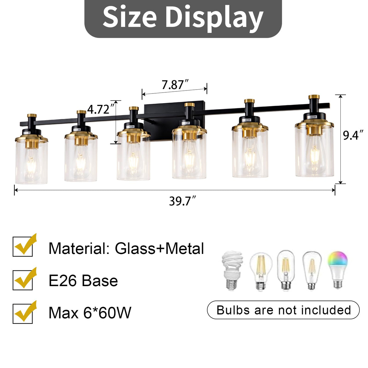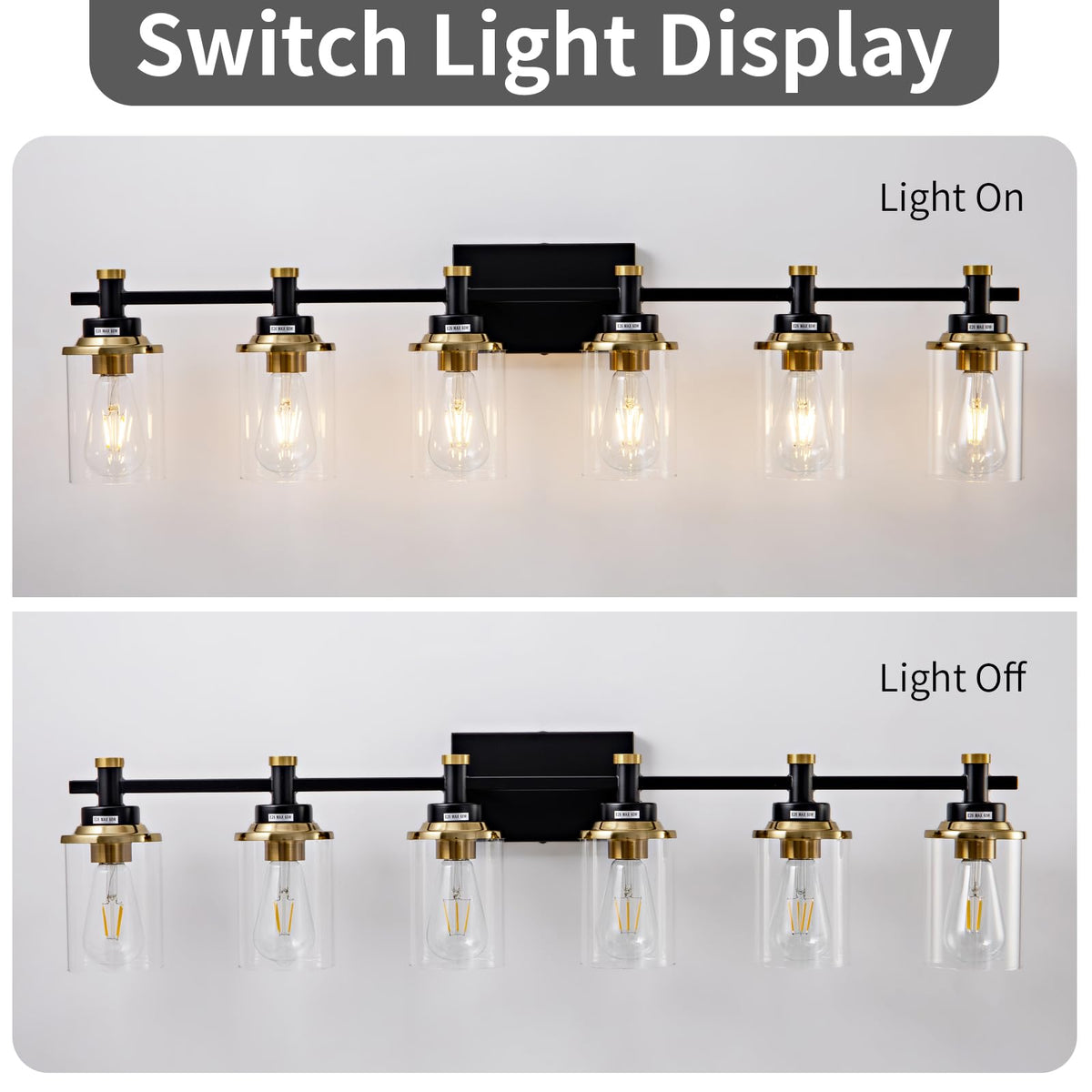 Aixialin 6 Bathroom Vanity Lights, Black And Gold Bathroom Light Fixtures, Sconces Wall Lighting With Clear Glass Shade, Modern