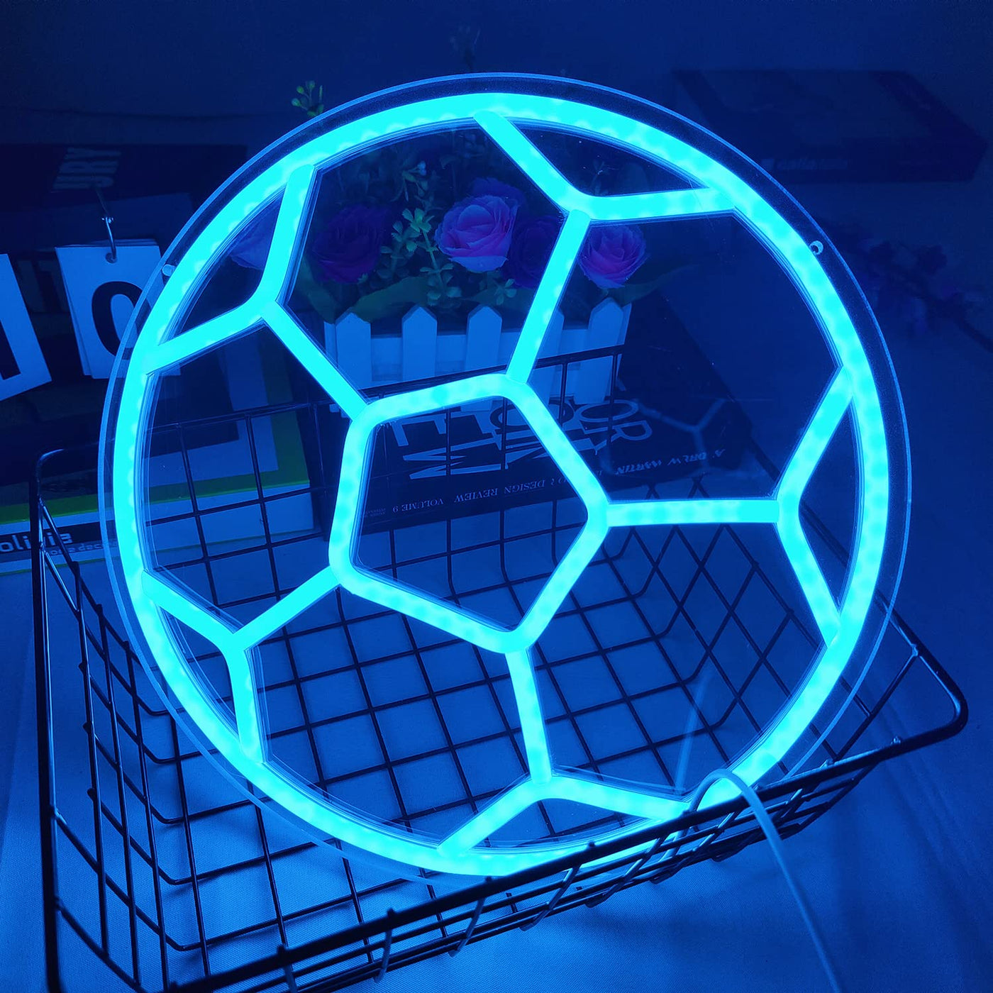 Ajoyferris Dimmable Ice Blue Soccer Neon Sign - 12" Soccer Ball Light For Bedroom & Parties