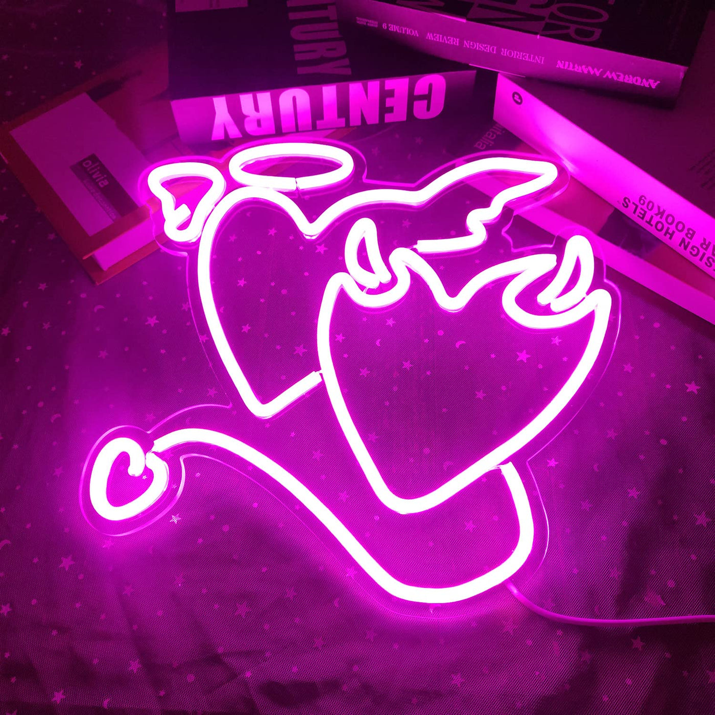 - **Unique Heart-Shaped Design**: The angel and devil neon lights feature a distinctive heart shape that radiates warm pink hues, creating an inviting atmosphere ideal for Valentine's Day, Christmas, or birthday celebrations.