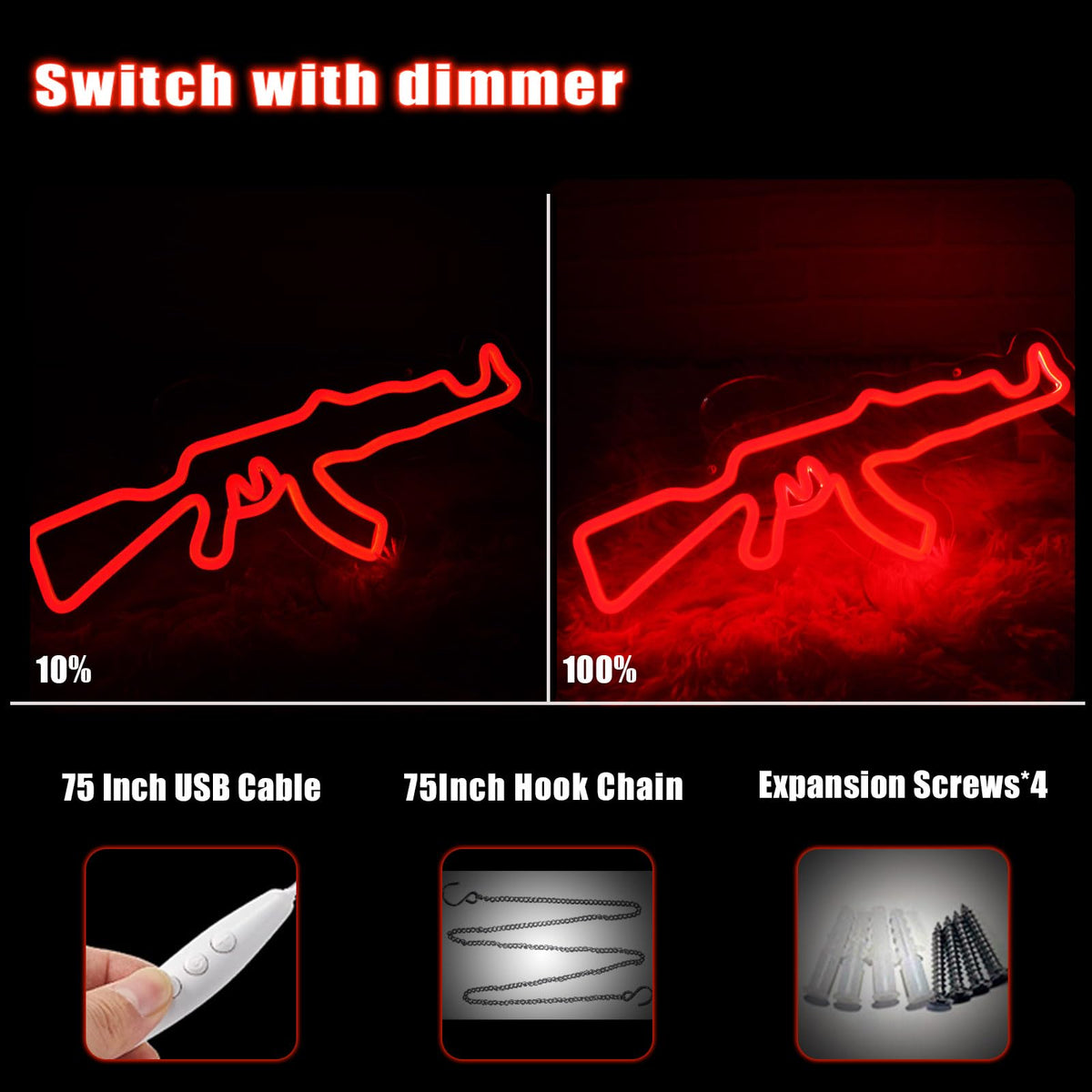 Ak47 Gun Neon Sign Gun Neon Light Led Neon Sign For Wall Décor Dimmable Led Neon Light For Bar Restaurant Music Concert Man Cave Wall Art 16.5"×6.3"