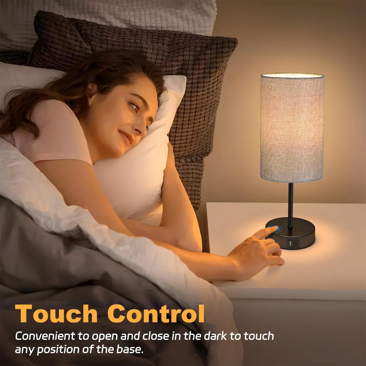 Akasuki Table Lamp For Bedroom, 3 Way Dimmable Touch Lamp With Dual Charging Station, Small Bedside Lamps For Night Stands, Livi