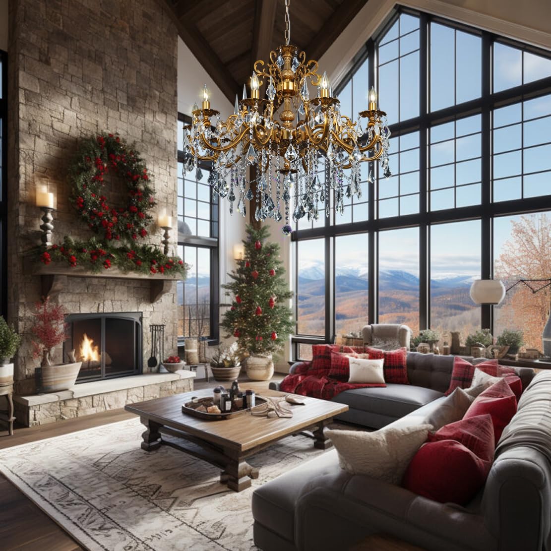 Akeelighting Antique Gold Crystal Chandelier for Dining Room & Foyer - 36.4'' Farmhouse Vintage Hanging Light Fixture with 10-Lights, Adjustable Chain, Dimmable for High/Low Ceilings
