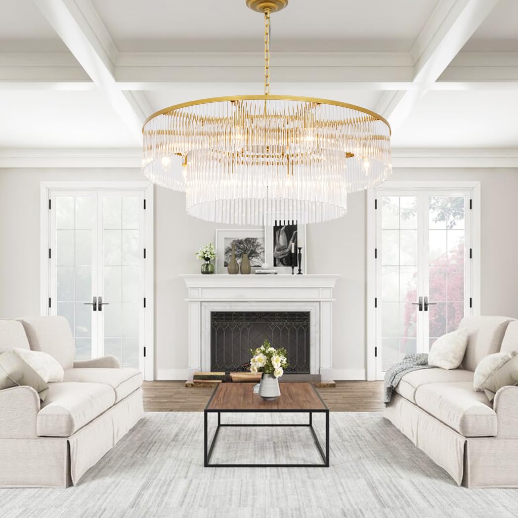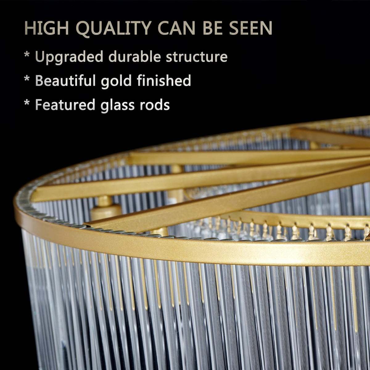 Akeelighting Gold Glass Chandelier Lighting Modern, 10 Light 2 Tier High Ceiling Chandelier Fixture Foyer Dining Room Ceiling Ha