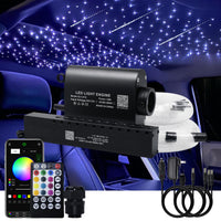 Q: How do I install the fiber optic lights in my car or home?A: To install the fiber optic lights, first connect the 16W RGBW light engine and mini shooting star light engine according to the included user manual. Run the 550pcs of 0.75mm fiber optic cables through the desired area, ensuring they are secure. The kit comes with a US power adapter and a car use plug for versatile installation options.