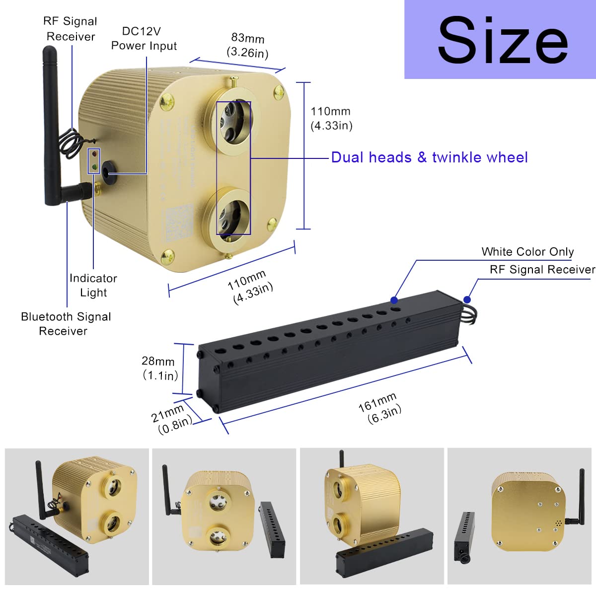 - 1x 20W RGBW Dual Head Twinkle Music APP Control Light Engine