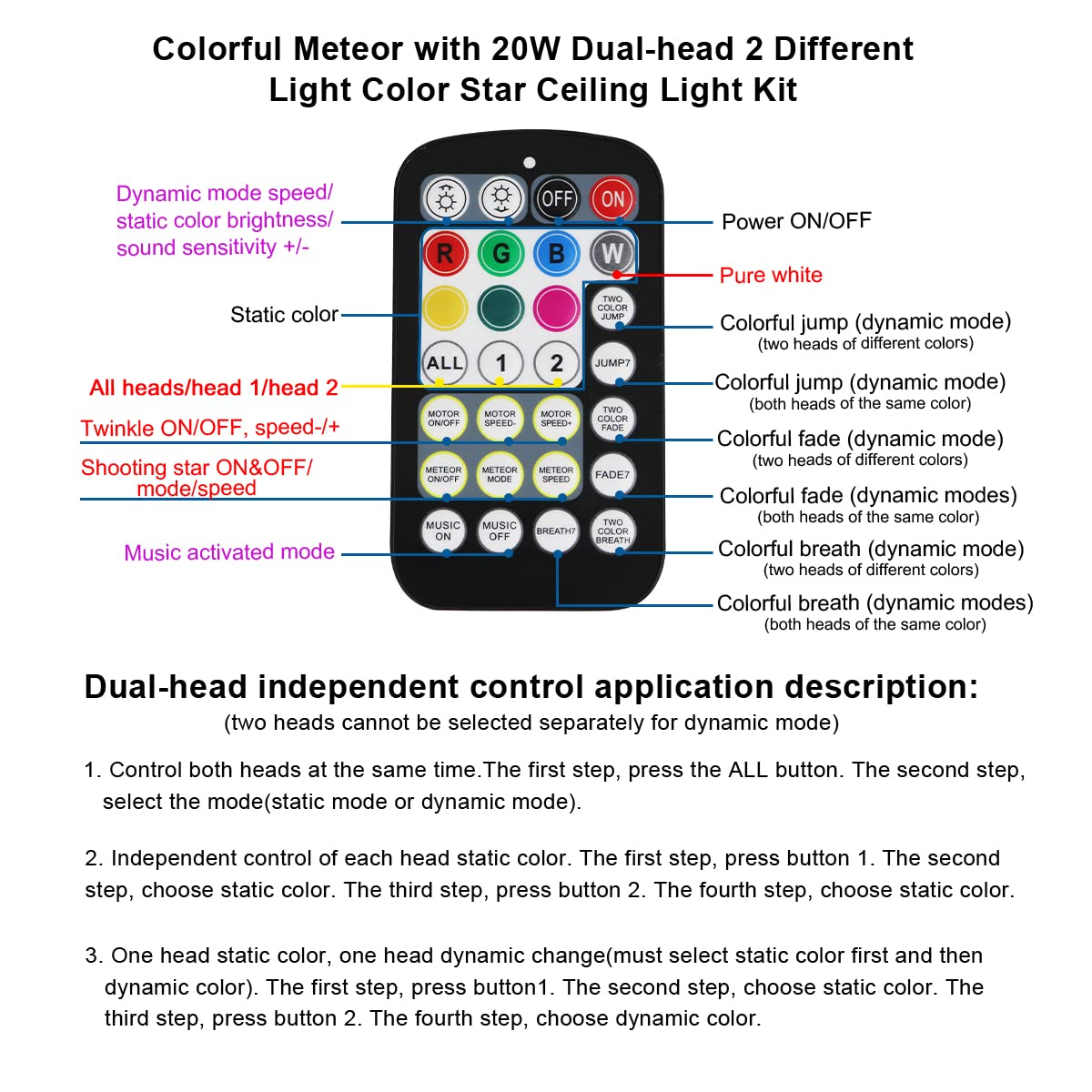 The AKEPO New Version Colorful Shooting Star Light Kit is an innovative lighting solution designed to create a captivating ambiance in any space. Ideal for parties, home décor, or special events, this versatile light kit features dual-head capabilities that allow for a stunning display of twinkling fiber optic stars and shooting star effects.
