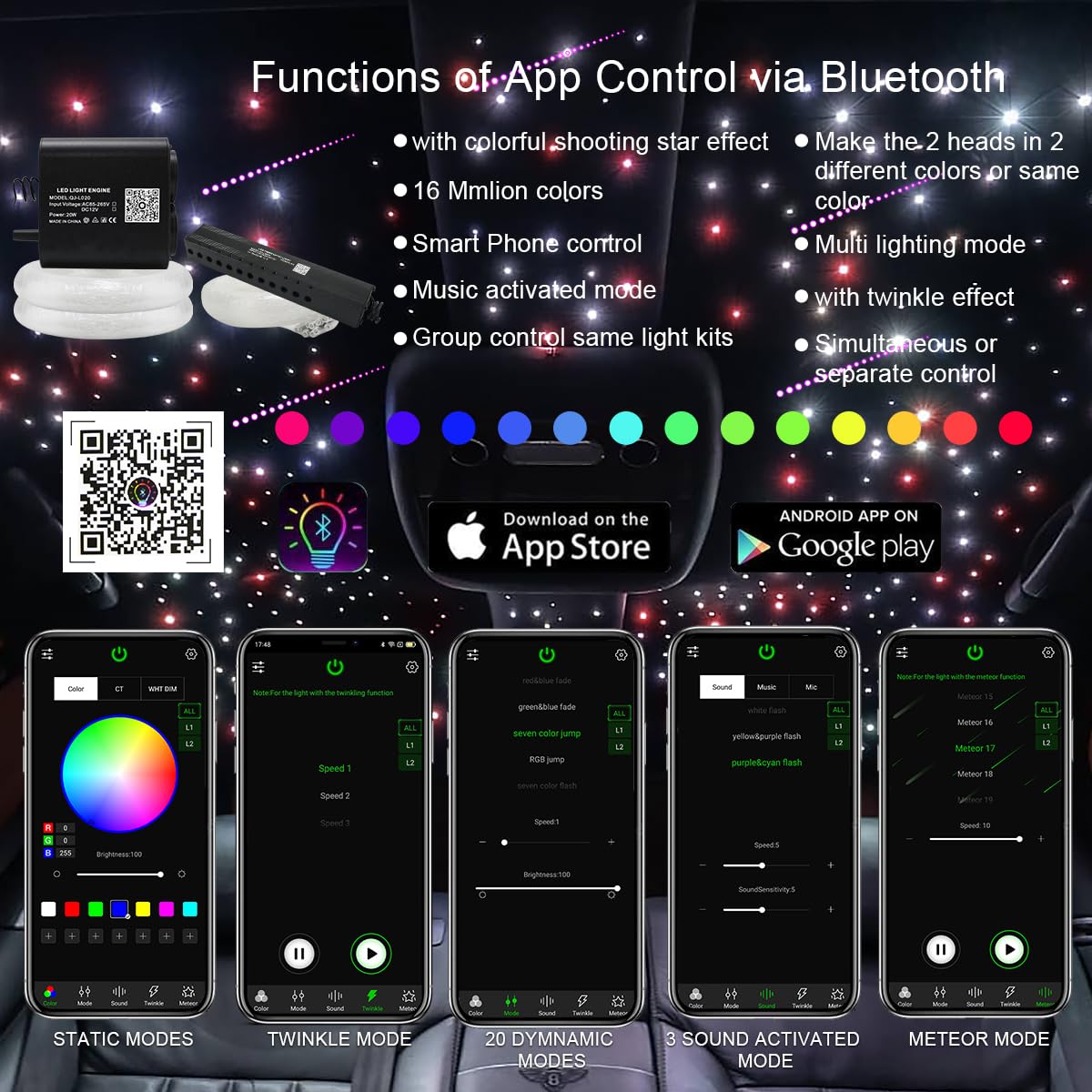 Transform your space into a captivating starry sky with the AKEPO Colorful Shooting Star Light Kit. This innovative lighting solution features dual heads for enhanced fiber optic installation, allowing for a stunning visual experience. With advanced control options through both remote and app, you can easily customize your lighting to fit any mood or occasion.