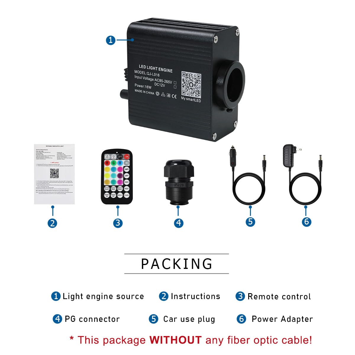 AKEPO Fiber Optic Light Engine, 16W Twinkle, RGBW, Bluetooth Control, Music Activated, Model QJ-L016, Red/Green/Blue/White