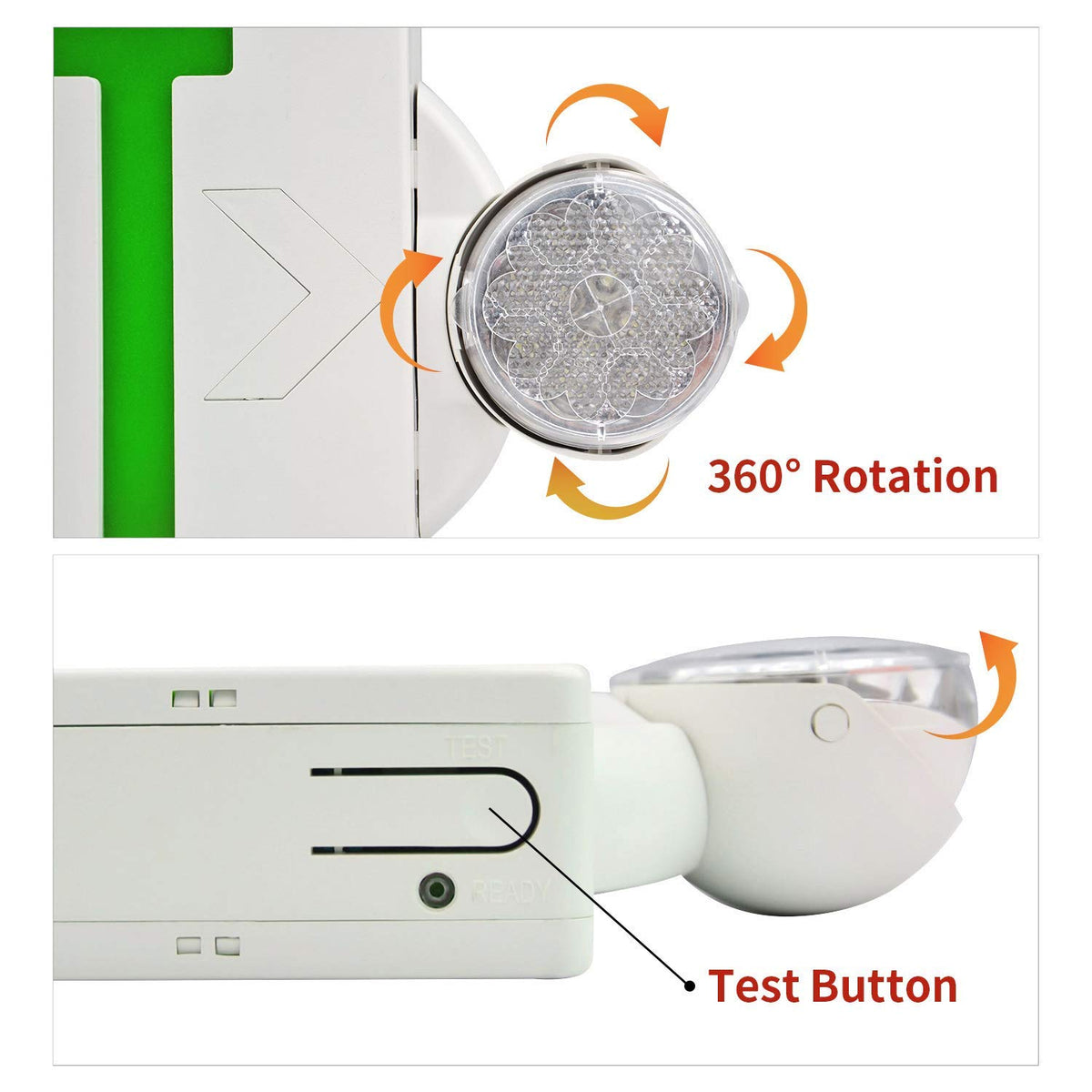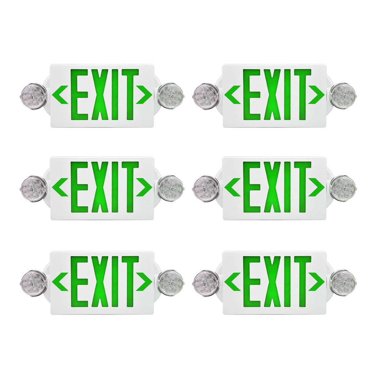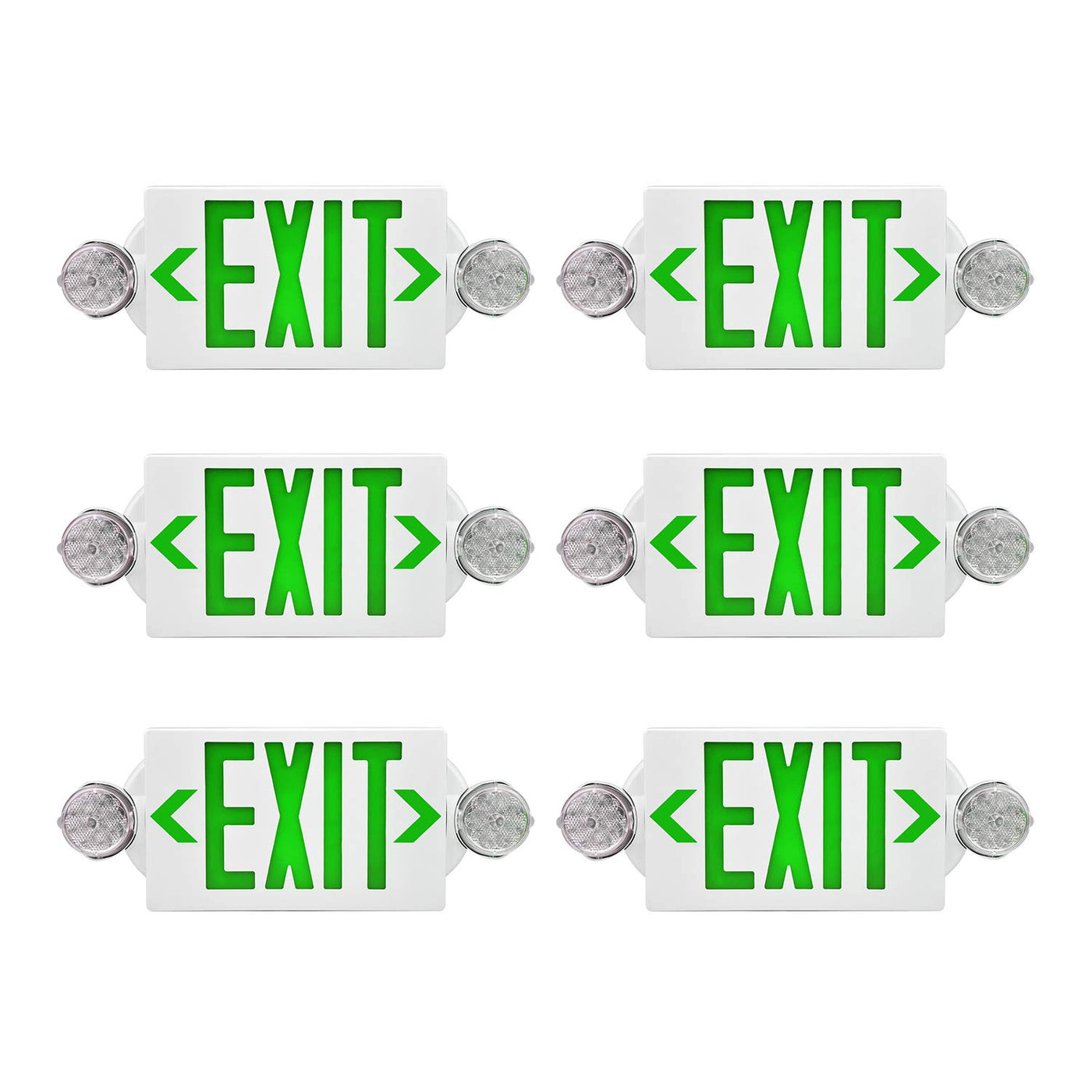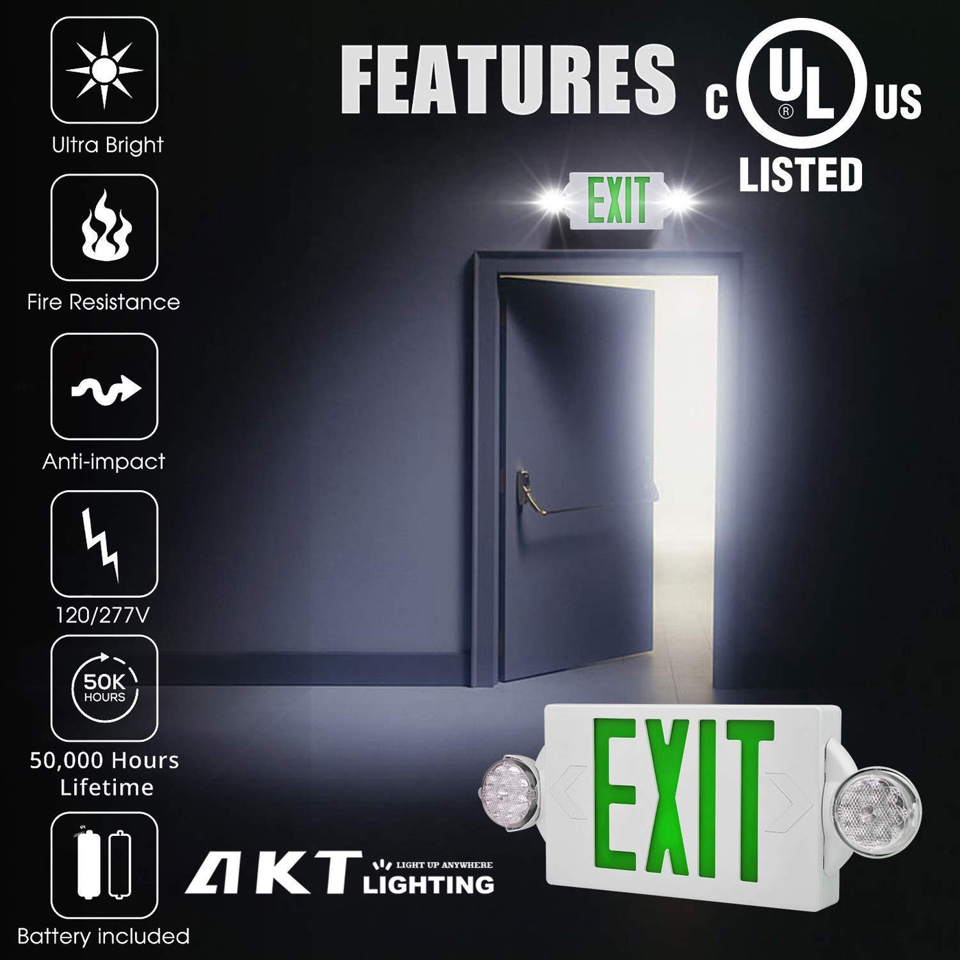Akt Lighting Led Emergency Light & Exit Sign Combo, Green Exit Sign, Ul Certified Emergency Exit Light, Adjustable Lamps With Back-Up Battery For Business (Green, 6 Pack)
