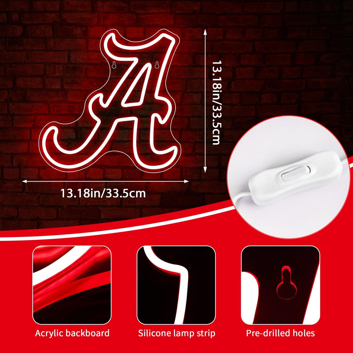 Q: What occasions is the Alabama Neon Sign suitable for?A: This neon sign is perfect for various occasions, including college dorm decor, graduation gifts, and as a decorative piece to support your favorite Alabama sports teams during the season.