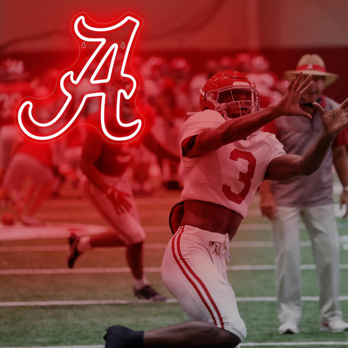 Q: Can I use the Alabama Neon Sign for outdoor settings?A: The Alabama Neon Sign is designed primarily for indoor use, such as in bedrooms or dorms, and should be kept away from wet or outdoor environments to ensure longevity.