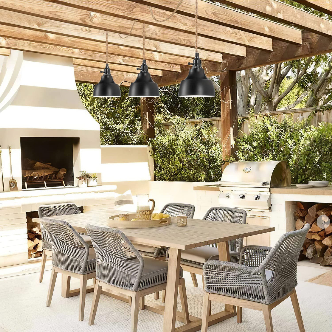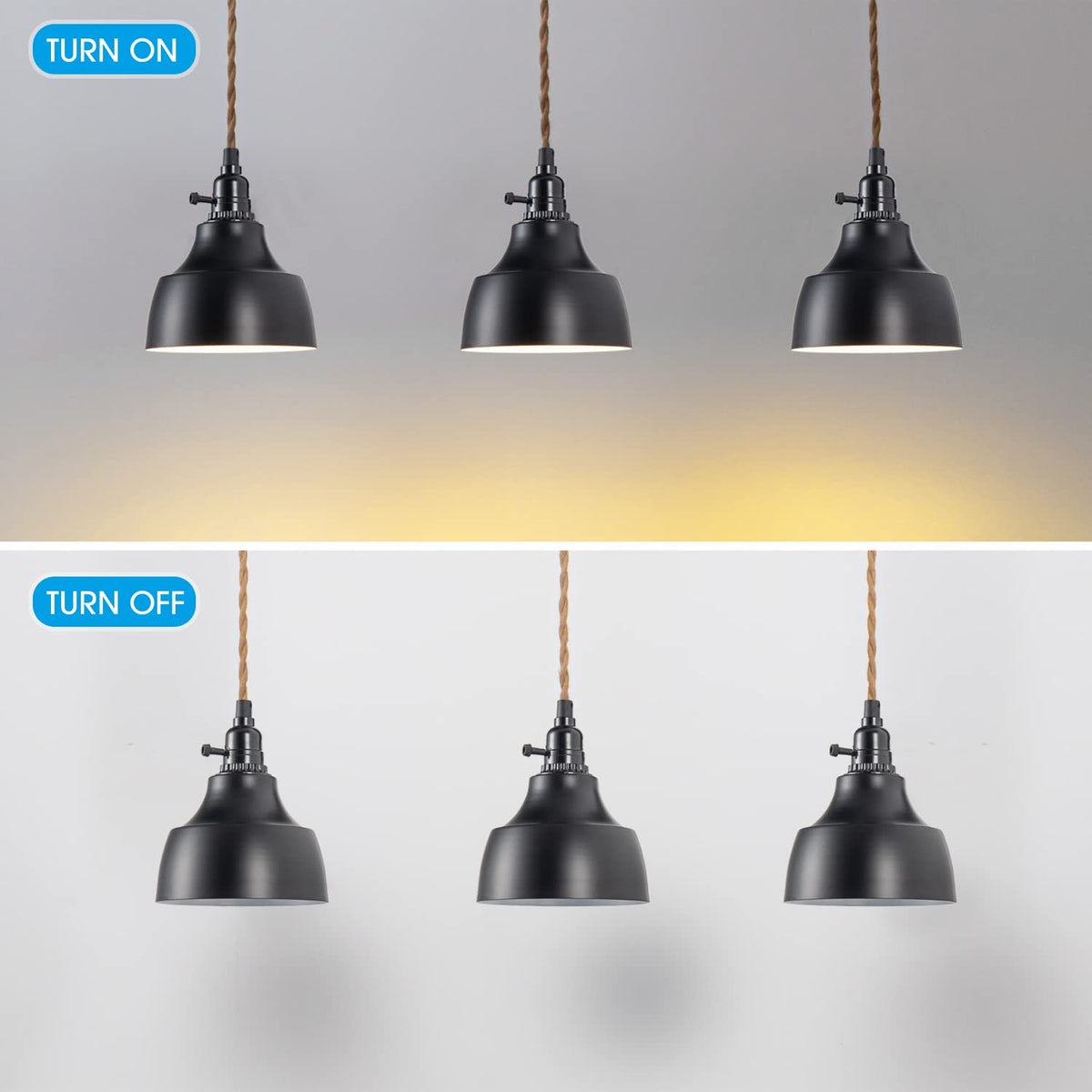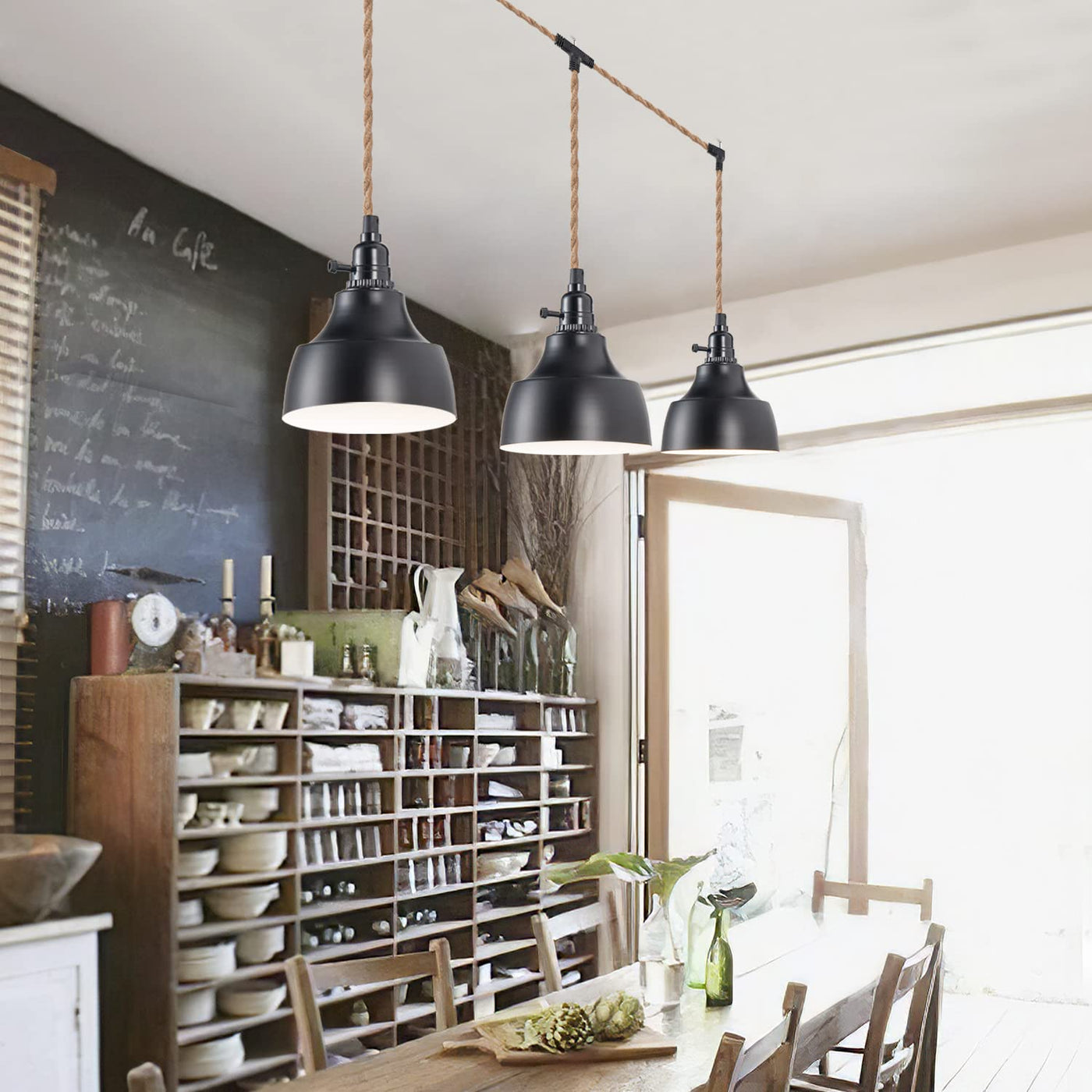 Alaislyc 3 Light Plug In Pendant Light Cord 22Ft Industrial Farmhouse Hanging Lamp With Twisted Hemp Rope Independent Triple Swi