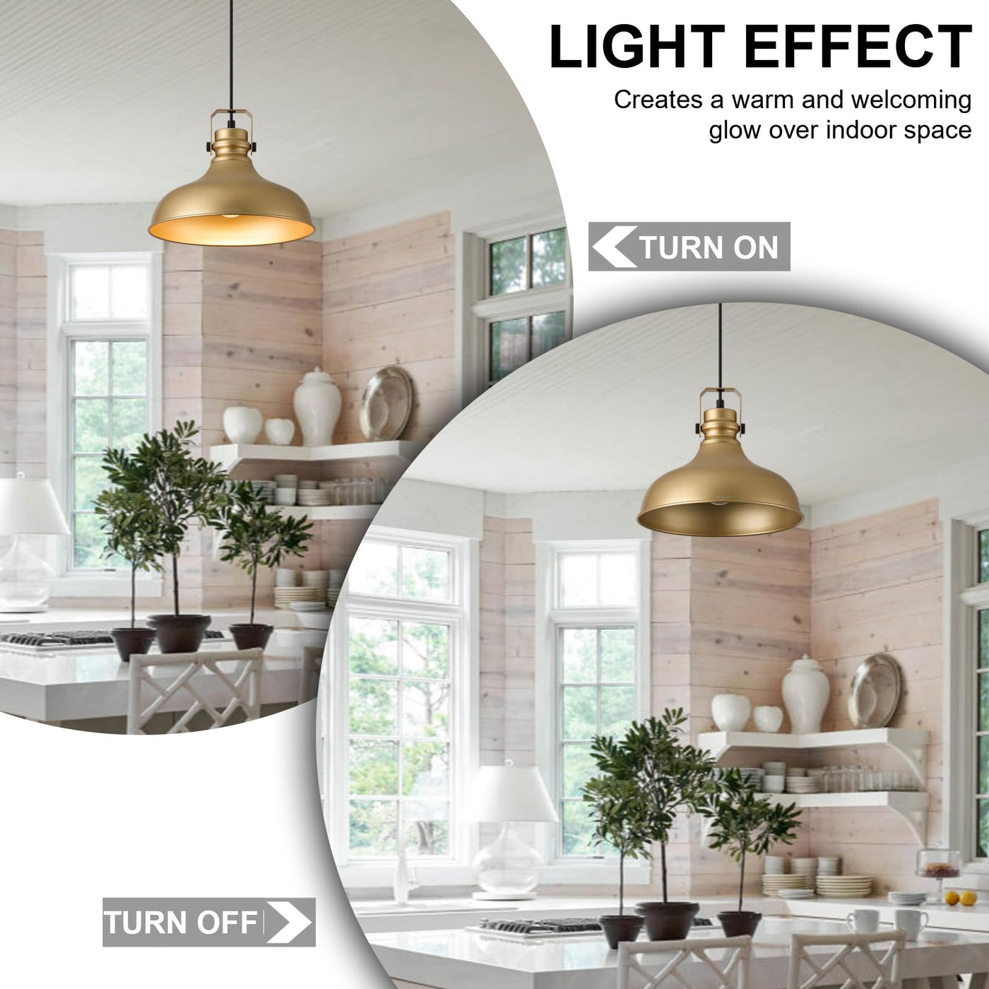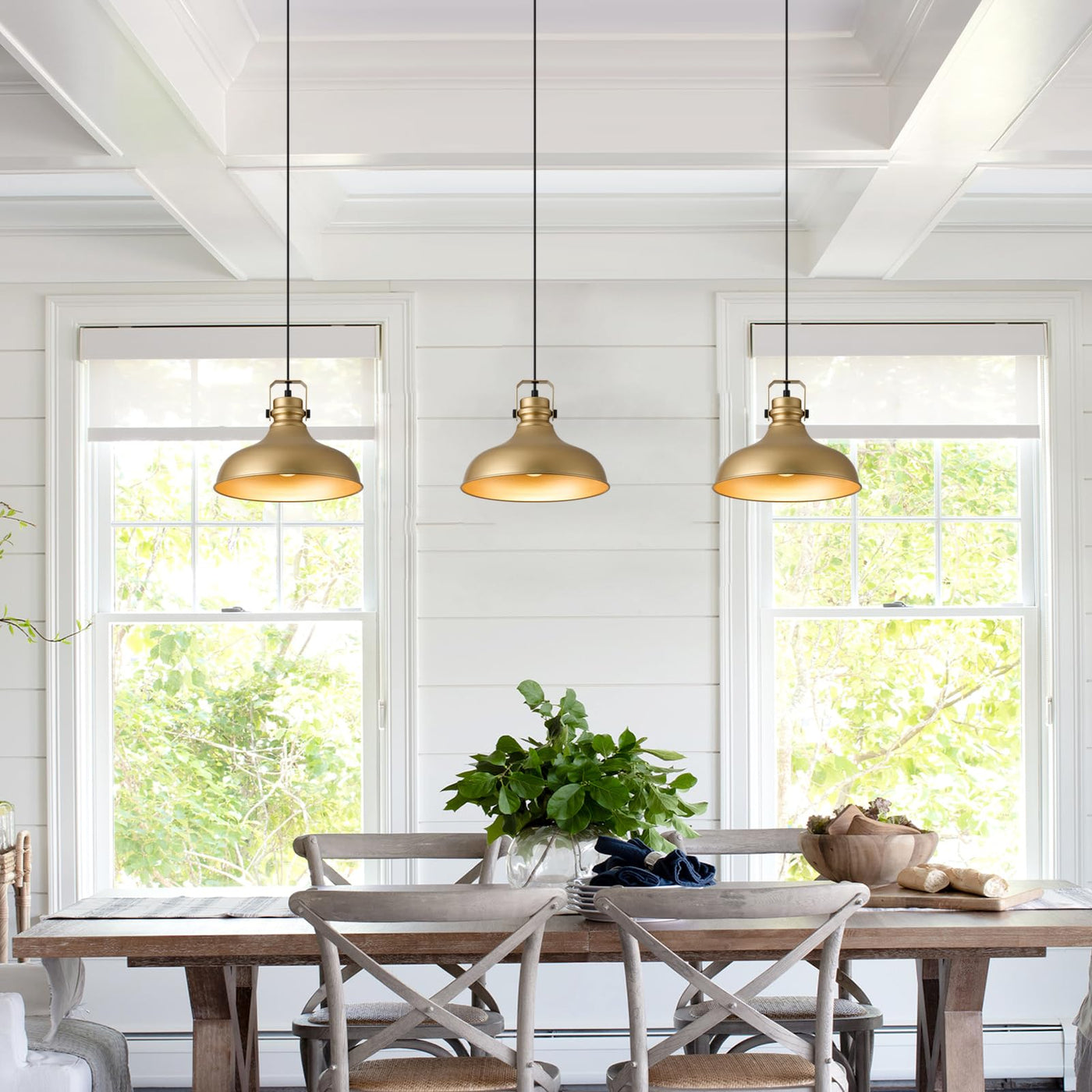 '''Classic Industrial, Well Made And Efficient: This Gold Pendant Lights Kitchen Island Classic Design,Widely Match With More Any Indoors,They Were Easy To Install And Adjust For Height.&Nbsp; Application: Perfect For Dining Room Or Eat In Kitchen Area.Widely Used In Kitchen, Kitchen Sink, Kitchen Island, Bar,Bar Counter,Modern Farmhouse Kitchen,Basement,Breakfast Table Service Life:Lamp Base Made Of Porcelain, Which Features Such Specialties As High-Temperature Resistance, Abrasion-Resistance, Long Service-Life.&Nbsp; Farmhouse Pendant Light Specification:&Nbsp; Style: Classic Industrial;&Nbsp; Color:Gold;&Nbsp; Material: Metal;&Nbsp; Voltage:110V Ac;&Nbsp; Wattage:60W Max;&Nbsp; Dimension: Diameter: 11.4-Inch,H:8-Inch ;&Nbsp; Adjustable:Yes, 84-Inch Max,11-Inch Min Installation Requirement:Hard Wired. Bulb: 3 X E26 Base (Max.60W).''''''
