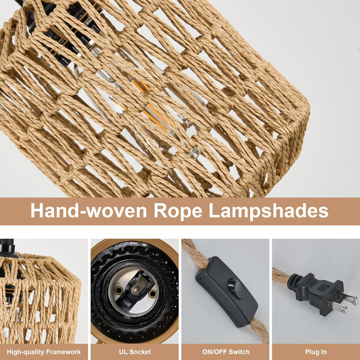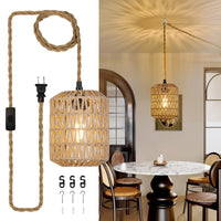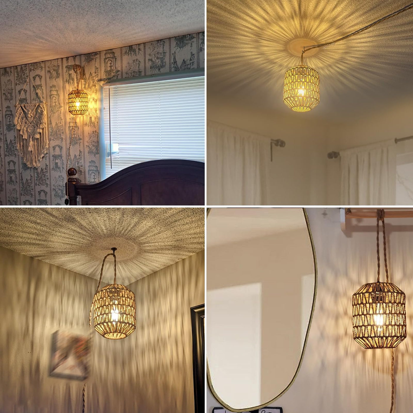 Alaislyc Yellow Rattan Plug In Pendant Light With 15Ft Cord For Bedroom Kitchen Foyer