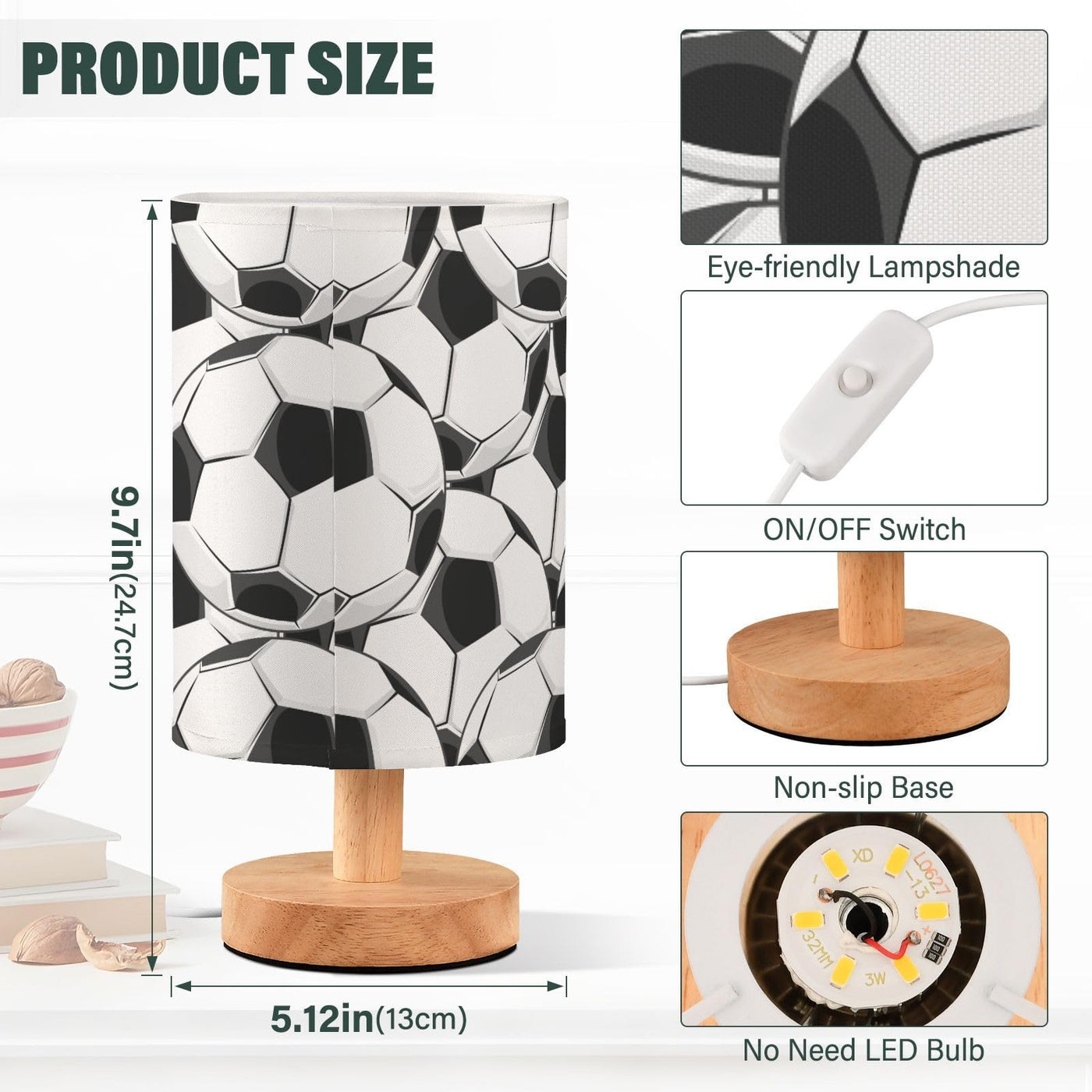 Alaza Black White Soccer Decor Bedside Table Lamp With Usb Port For Bedroom Nightstand Office Desk Led Bulb Included