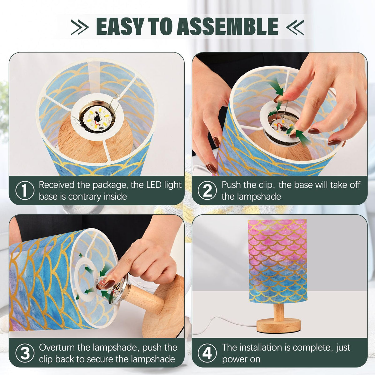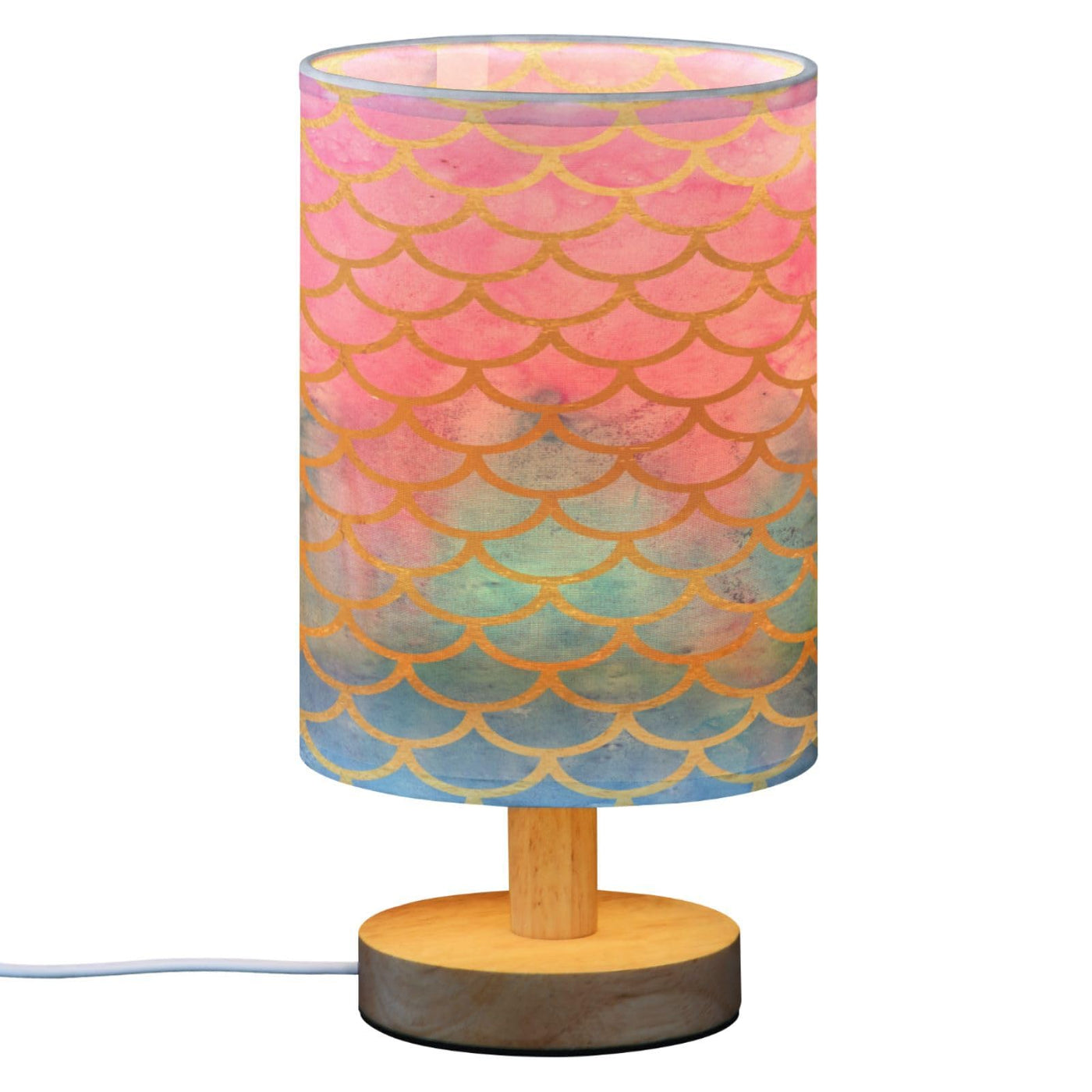 Alaza Mermaid Scales Pink Blue Gold Decor Bedside Table Lamp With Usb Port For Bedroom Nightstand Office Desk Led Bulb Included