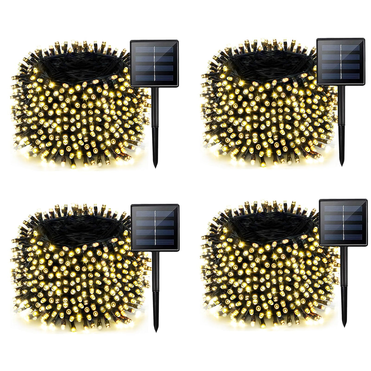 Albelt 4 Pack Solar Christmas Lights, 480 LED, 170 FT, Warm White, 8 Modes, Waterproof String Lights for Outdoor Decorations