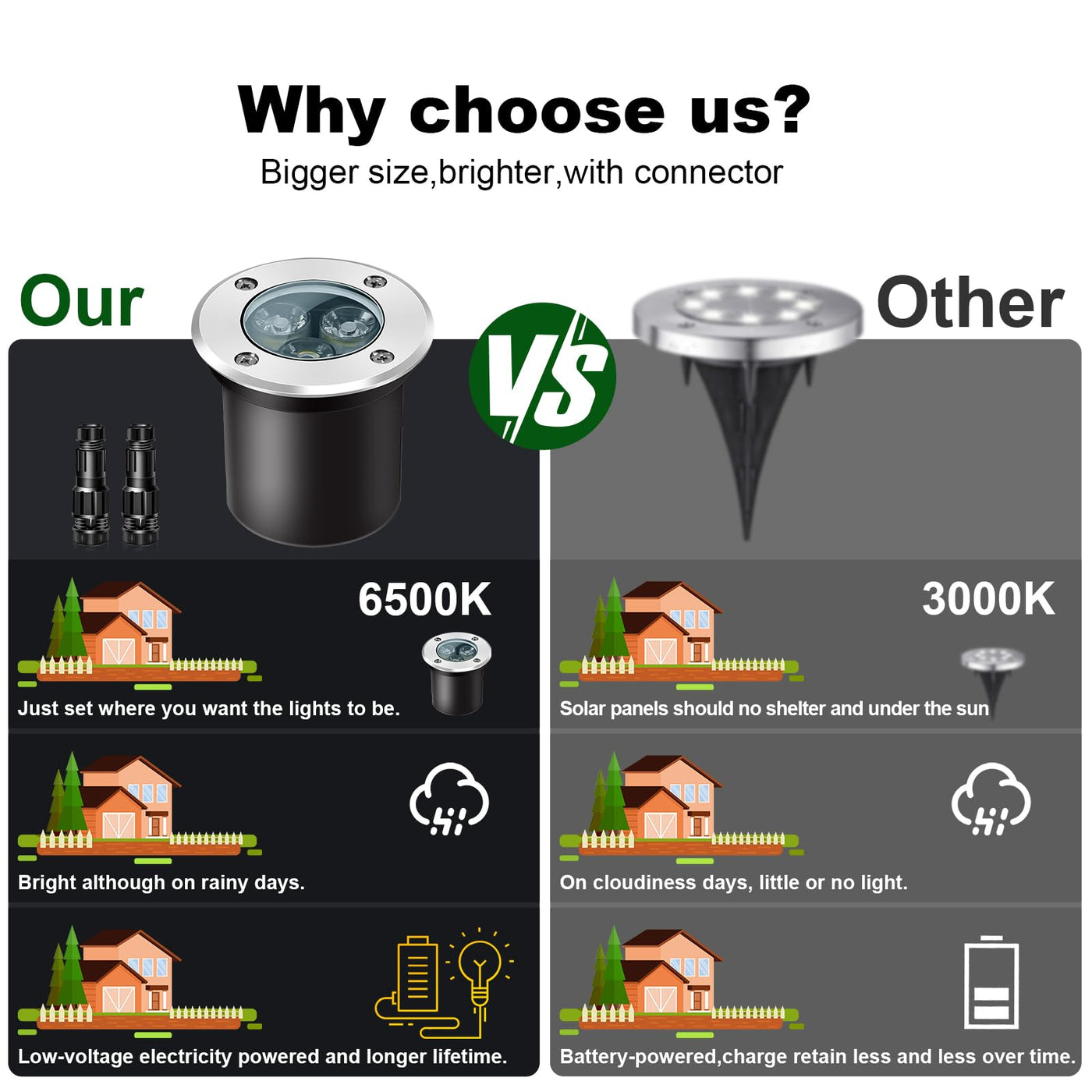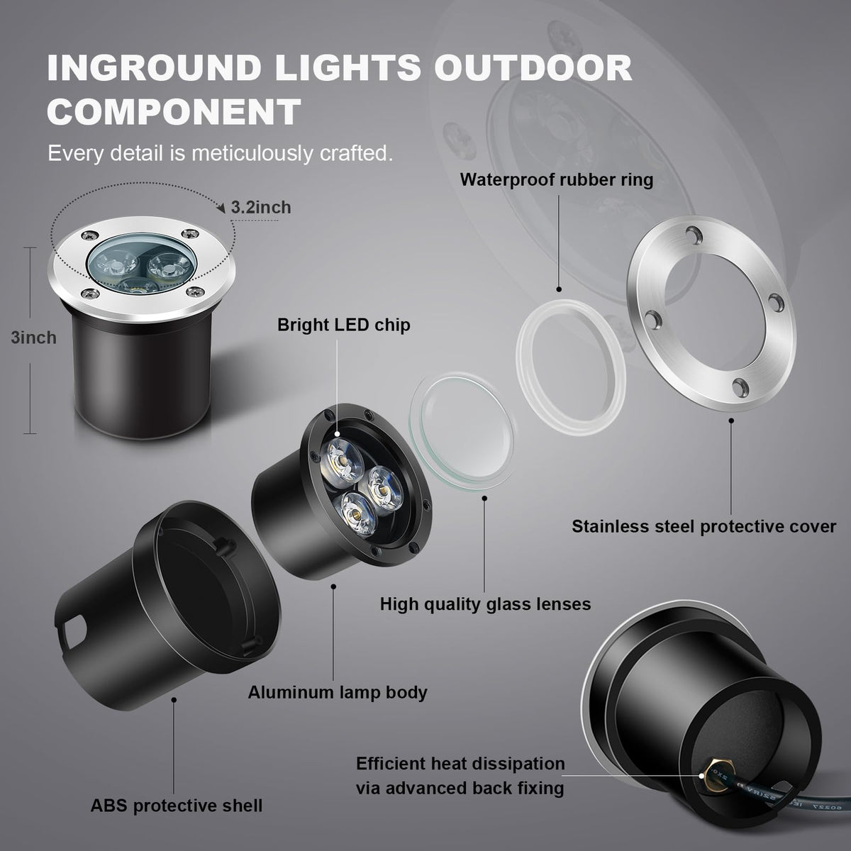 3W 6500K Cool White In-Ground Lights*4; Wire Connectors*8