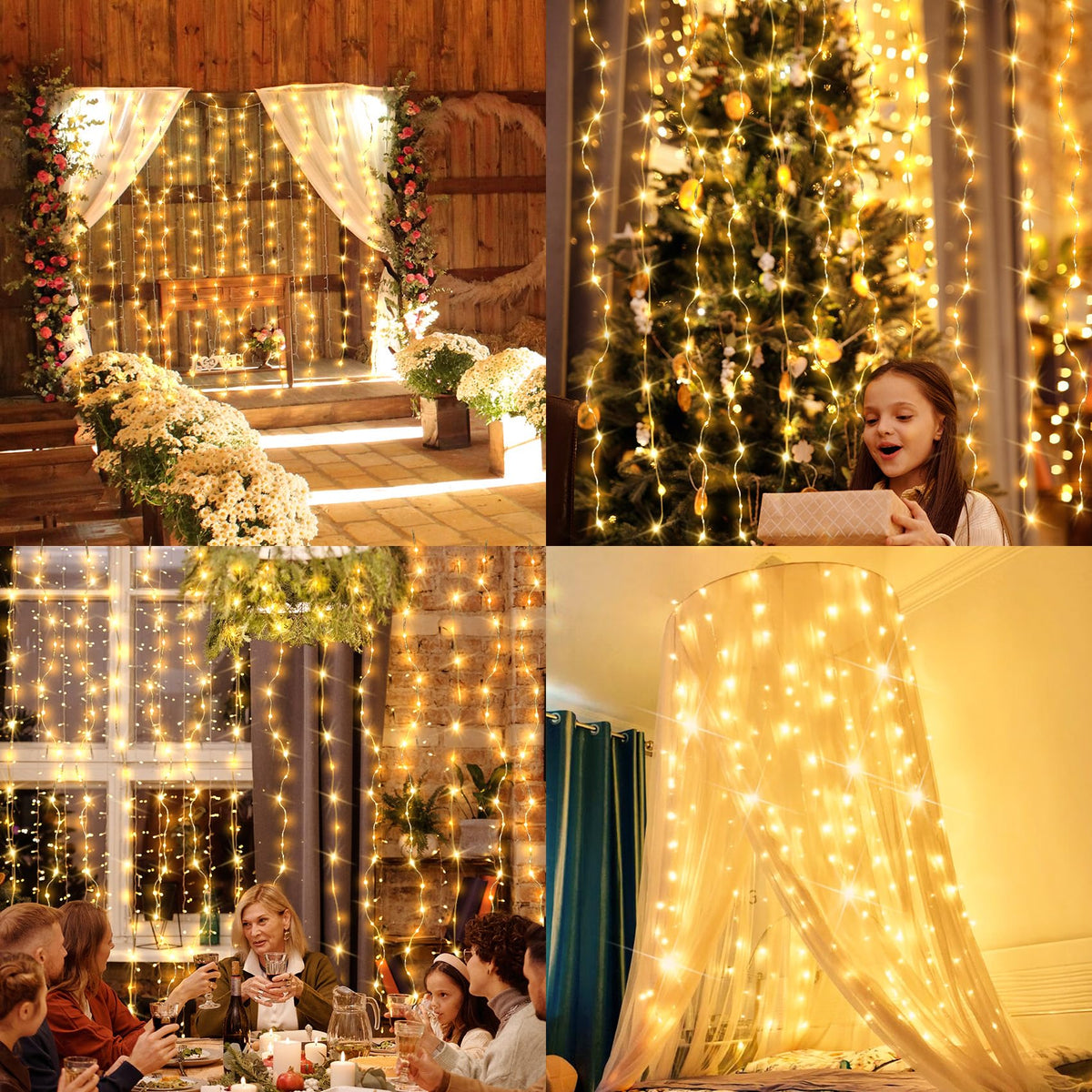 This fairy curtain lights offer a range of adjustable settings to suit your desired atmosphere. 8 Working modes: combination, in waves, sequential, slogs, chasing/flash, slow fade, twinkle/flash, and steady on. Suitable for indoor/ outdoor use Perfect for various occasions, including Christmas, Halloween, parties, Valentine's Day, weddings, and more. Whether you want to decorate your home, window, bathroom, or create a festive atmosphere in a restaurant, hotel, commercial building, or shopping center, these lights are an ideal choice. Safe to touch Operated with 5V low voltage, our fairy curtain lights glow with low heating, it can be safely hung on the curtains or on the wall. It is a wonderful decor for dorm, college, bedroom, party, birthday, wedding, Christmas, New Year.