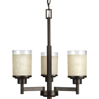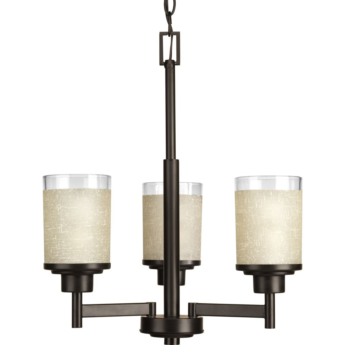 Alexa Collection 3-Light Etched Umber Linen With Clear Edge Glass Modern Chandelier Light Antique Bronze