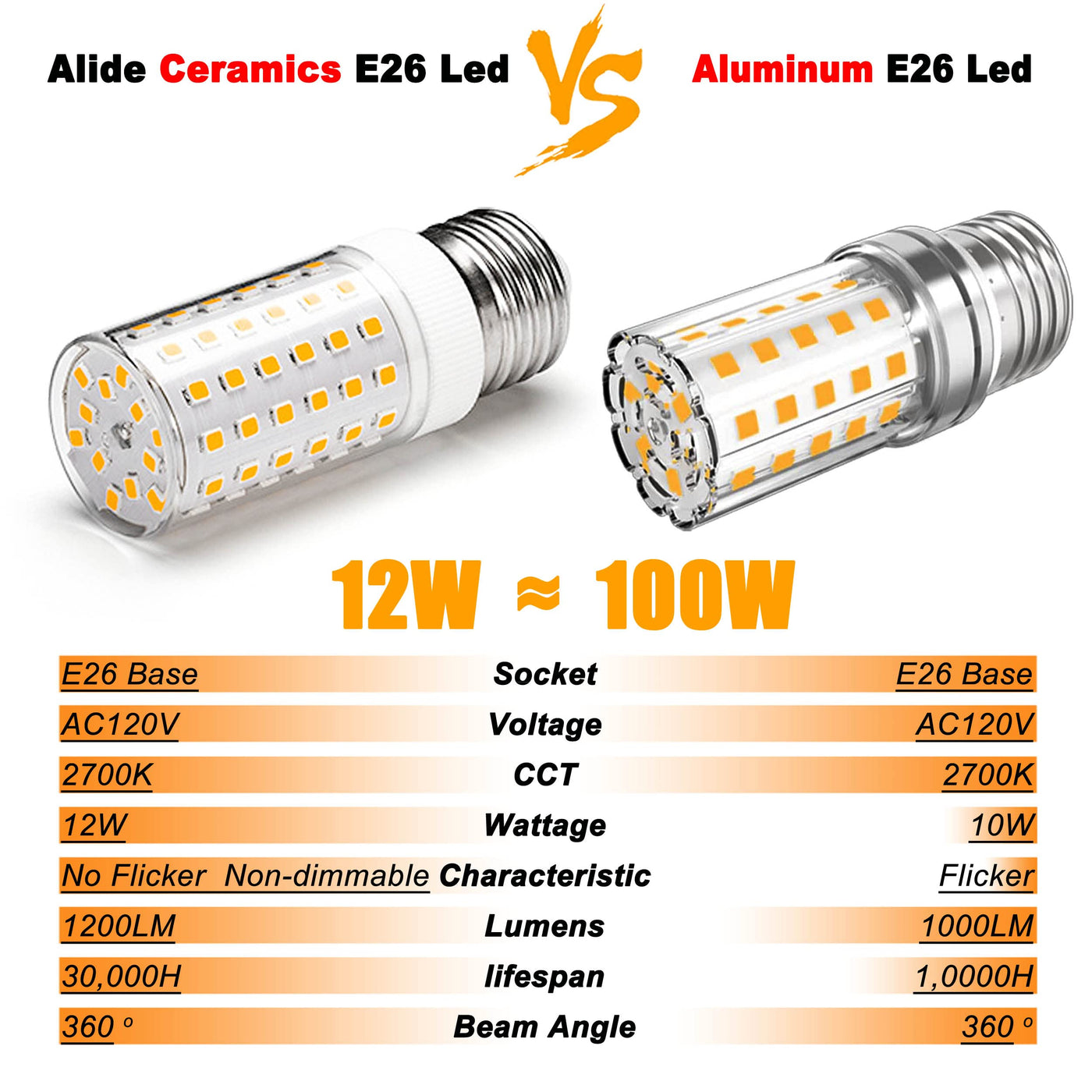 Alide E26 100 Watt Equivalent Led Candelabra Corn Bulbs,2700K Warm White,E26 E27 12W Led Light Bulbs 1200Lm For Ceil Fan Chandelier Pendant Lighting,Non-Dimmable,4 Pack