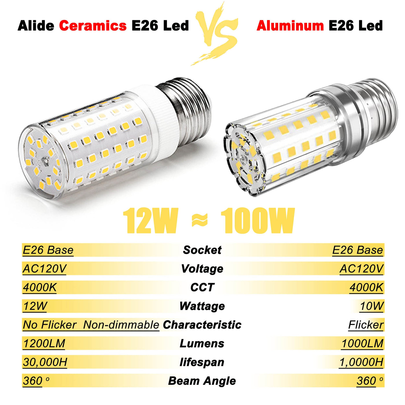 Alide E26 E27 12W Led Candelabra Bulbs,E26 100 Watt Led Replacement, 4000K Natural White,E26 Led Corn Light Bulbs 1200Lm For Ceiling Fan Chandelier Pendant Lighting,Non-Dimmable,4 Pack