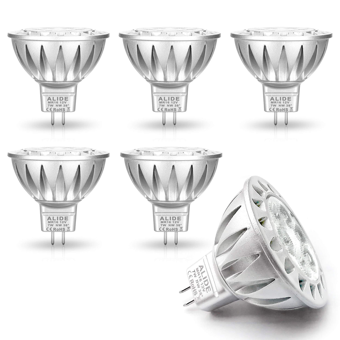 Alide Mr16 7W 4000K Natural White Led Bulbs,50W-75W Halogen Equivalent,12V Low Voltage Mr16 Gu5.3 Bulb Spotlight For Outdoor Lan