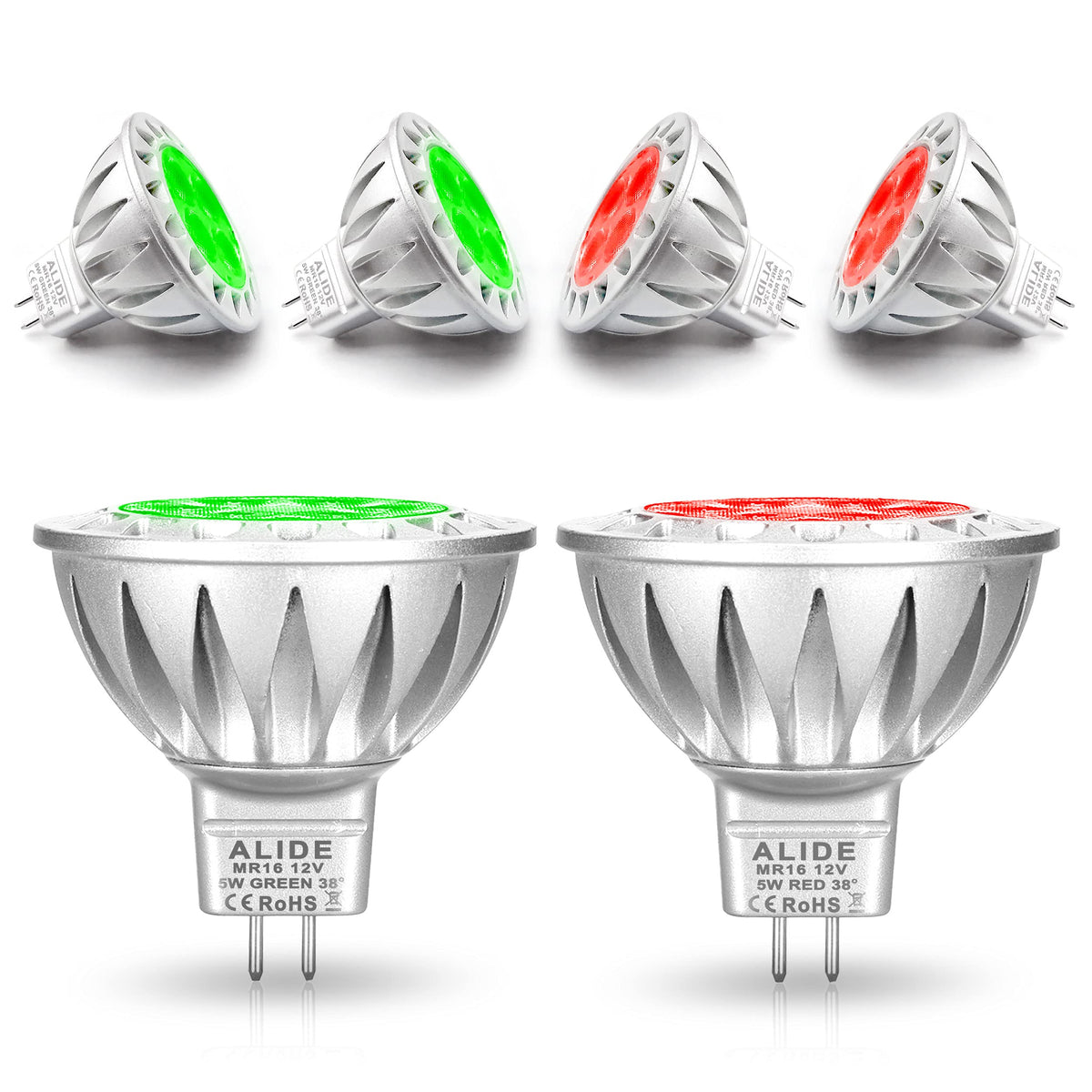 Alide Red Green Mr16 Gu5.3 Led Bulbs,Replace 20W 35W 50W Halogen,12V 5W Red Green Mr16 For Christmas Holiday Decoration Outdoor