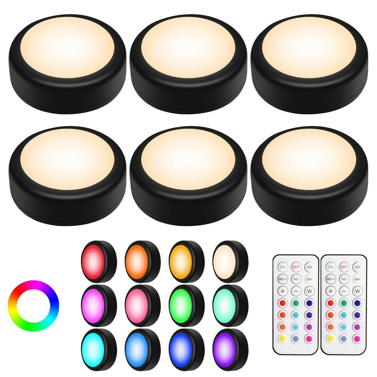 Alivation AA-1066 LED Puck Lights 6 Pack with Remote Control